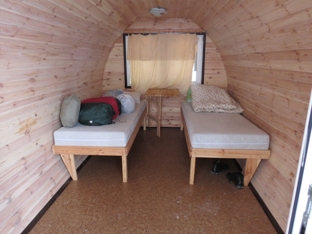 В кемпинге "Клевое место" на берегу Вилейского водохранилища недорого можно оставить под присмотром свой автомобиль, воспользоваться беседкой с мангалом и сухими дровами, разогреть и приготовить еду, остаться на ночлег в отапливаемых домиках и даже погреться в походной бане.