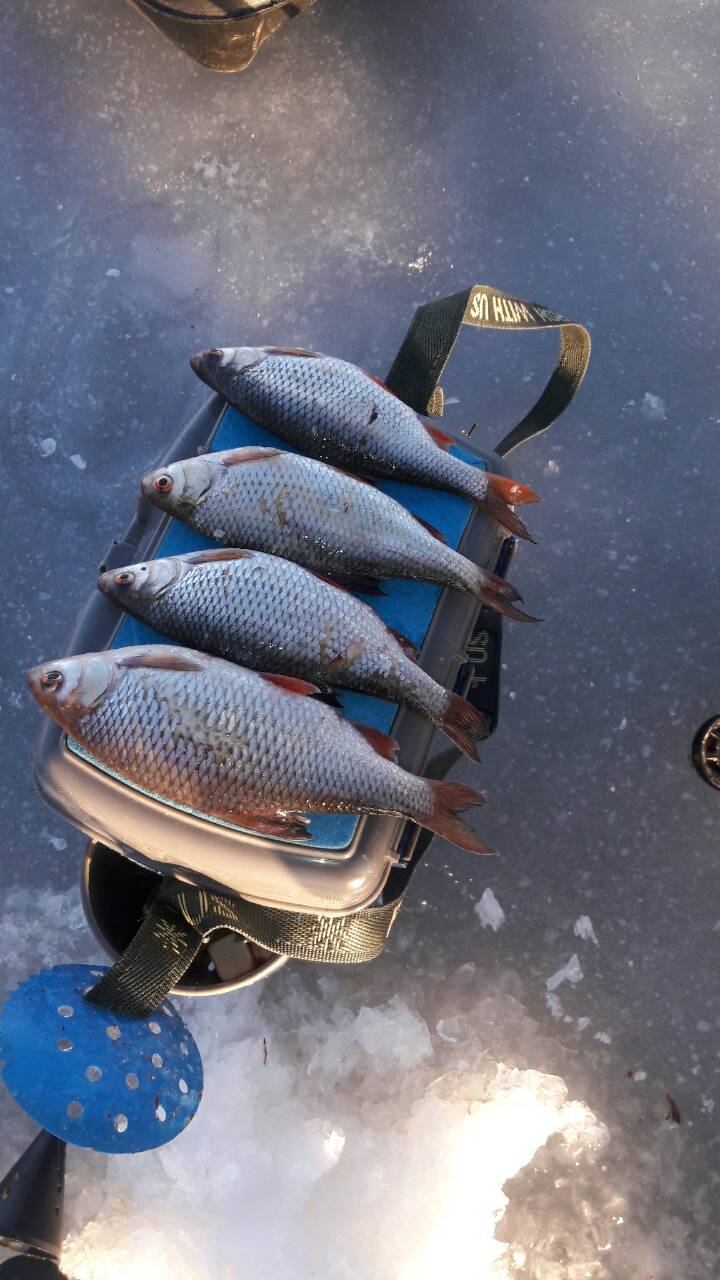 • Сегодня на рыбчино не считая трех рыбаков были одни!!! Сказка! Толи народ испугался субботней погоды толи еще чего... А погода сегодня была чудесная и клев присутствовал! До 12 вымутил 6 штук на крючок с мотылем... Потом обрезало... После обхода лунок с чертом не увидевши поклевки, поставил гвоздекубик и сразу с трех проводок 3 плитки. В итоге за час штук 15...17 плоток. Но больше 100 гр только несколько. Гвоздекубик заглох и я благополучно уселся за поплавки.. И до 16.00 выдурил еще штук 15. Многодетному другу нужно было в семью да и мне уже хватит... Всплывающий поплавок наблюдал , поклевки в руку ощутил, 100 граммов армянского напитка продегустировал... Мормышка не работала, глубина ОК.6. Чудесный день! Всем желаю того же!