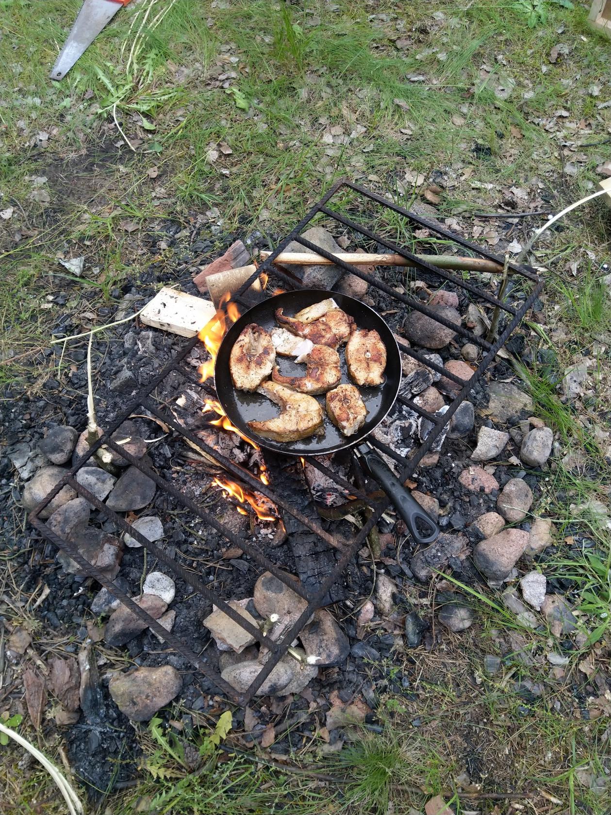 Потом ещё одна судачья поклёвка на выбросе - холостая. На этом закончили и отправились на берег - собираться и жарить рыбу на ужин.