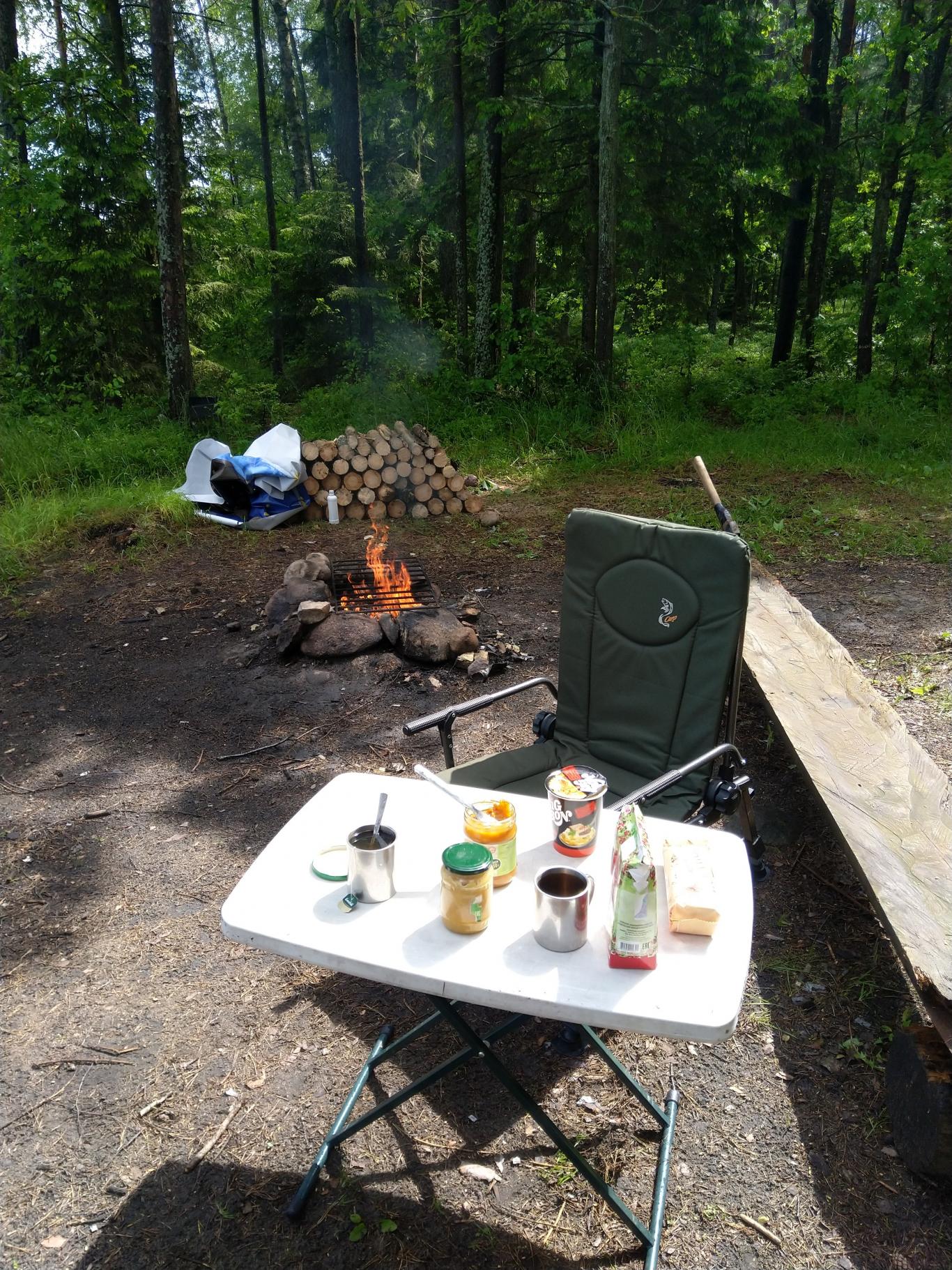 Во вторник вечером Наташа завезла меня на одну из любимых полян, разбили лагерь, накачали лодку и собрали снасти, провели прекрасный вечер у костра, а с утра Наташа оставила меня одного - наслаждаться природой.