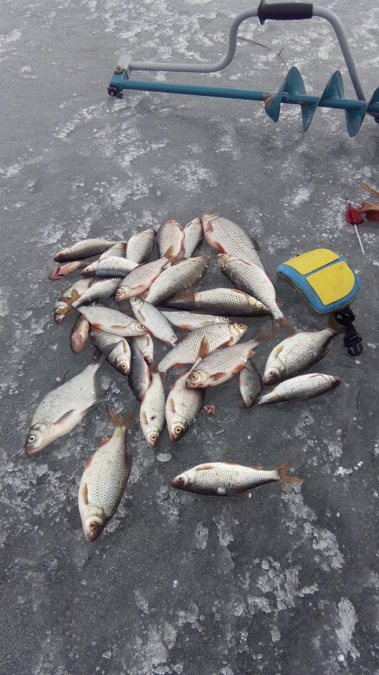 • Сегодня ВВ, Косута, с 9 до 17. Кормил 8 лунок, с добавлением лиманника, глубина 4,6-4,8м. Ловил на кивок-мормышка-мотыль. Клев до 16 ч. был откровенно вялый, до этого времени словил десяток плотвиц, на игру 0, все со дна и приходилось ждать поклевки. С лунки по 1 рыбке, не больше. После 16 клев активизировался, рыба стала клевать и на игру. В итоге получилось два десятка плотвы, плотва нДальний от меня сосед десяток словил на гвоздерашик, у меня не получилось. Этот же рыбак сказал, что у него хорошо клевало и до 14 ч, потом затихло, и после 16 у него тоже рыба активизировалась. Он словил около 3 кг. Сидел метров 200 от меня. Видимо я не угадал с зоной, глубина у него была такая же.