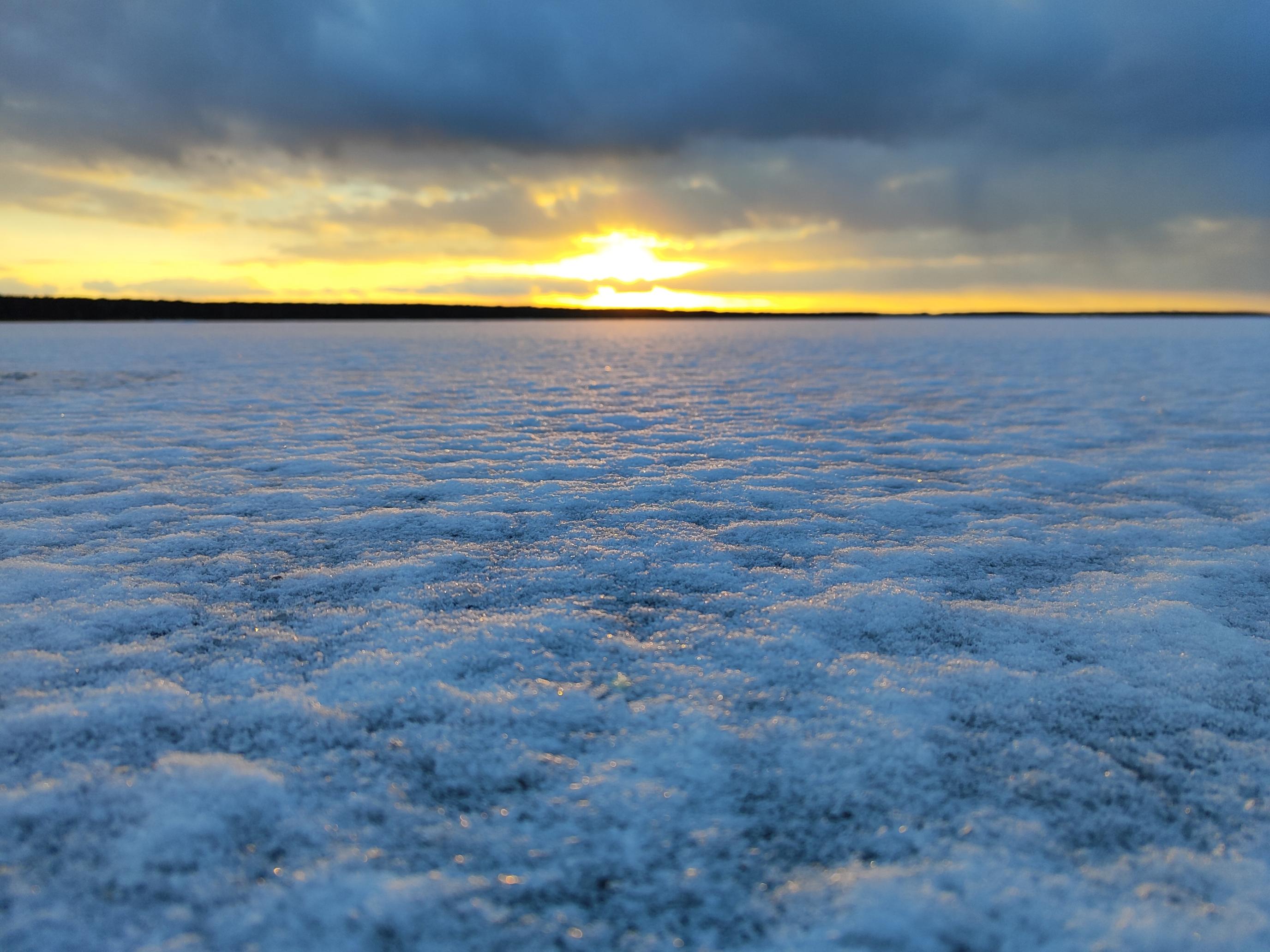 С выходом солнца лед начал трещать. Но звуки забавные, как перестрелка из каких-нибудь звездных войн, пиу-пиу такое. Я все ждал, когда пройдет снег. После этого, по моему разумению, рыба могла начать активность.