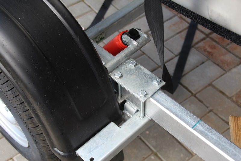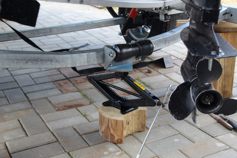 Первым делом нужно было решить вопрос с транспортировкой, выбор наш пал на МЗСА-81771D. Вроде прицеп как прицеп, много их продается разных, ну полностью оцинкован, ну немного помощнее чем у конкурентов рама, ну собран из импортных комплектующих фирмы AL-KO, даже лебедка от AL-KO, однако, на мой взгляд, его сильные стороны это подвеска на рессорах и амортизаторах, которая дает приличную плавность хода и не вытрясает из лодки с мотором все что плохо прикручено на наших дорогах и, самое главное, - «подвижный колесный ход». Переводя на русский язык колесную ось можно смещать вперед и назад добиваясь оптимальной нагрузки на фаркоп автомобиля. Это не мелочь, скажу я вам. Пару лет назад я на своем, тогда еще новом, Рено Дастер ухохатал задние амортизаторы за несколько поездок таская лодку моего товарища. Нагрузка на фаркоп в идеале для легкового автомобиля не должна превышать 30 кг. После установки нашего корабля на новехонький прицеп и транспортировки к месту дислокации, а именно в мой гараж, уже наученный горьким опытом я решил проверить сколько же реальных килограмм давит мне на хвост… В заводской сборке прицепа получилось почти 49 кг. Наверное для Ландкрузера 200 с пневмоподвеской это конечно не проблема, но для нас, владельцев полу легковых автомобилей лучше нагрузку уменьшить. Путем не хитрых манипуляций с вывешиванием прицепа и посредством ключа на 19, четырех деревянных чурок и одного домкрата за часок смещаю ось колесного хода на 20 см и добиваюсь нагрузки на фаркоп в 24 кг.Нажмите на изображение для увеличения.