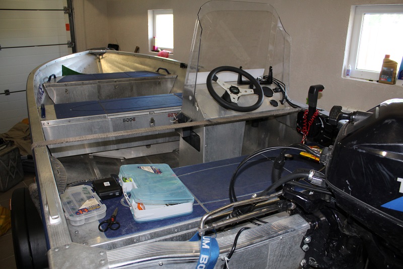 Вот мы и на складе. Начну с того, что у меня сильно поменялось мнение о габаритных размерах лодки необходимой для участия в ЧРБ и обычных рыбалок на наших водоемах. Отходив достаточно много времени на совкомоделях, я был уверен что у лодок длиной до 4 метров просто не может быть просторного кокпита. Капотная компоновка отечественных лодок не баловала жизненным пространством. Но увидев в живую лодки финских и шведских производителей я свое мнение поменял. Четырех метровой Terhi 400 и Linder Sportsman 400 хватило бы за глаза даже придирчивому покупателю, при том что с шириной корпуса там тоже все в порядке было 150 и 165 см соответственно. И в том, и в другом варианте присутствует разумно высокий борт, обеспечивающий безопасность, куча всевозможных рундуков и безупречное качество изготовления, даже близко не похожее на то, что делалось раньше или делается сейчас на постсоветском пространстве.