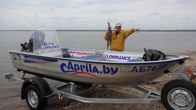 Излазив лодку вдоль и поперек начинаем осознавать что это ОНО, и это именно то, что нам нужно. С Двадцатым мотором это будет шикарный вариант для участия в рыболовных соревнованиях и удобный, легкий, безопасный, мобильный комплект для любительских рыбалок, способный доставлять удовольствие владельцу долгие годы. И тут директор ООО «Априла» задает нам вопрос: «а не сильно ли нам будет мешать пост дистанционного управления со стеклом?» Мешать то не будет, при такой ширине корпуса и особенности монтажа «родного» поста фирмы LINDER я бы даже сказал что он будет помогать… но ведь это потянет за собой и мотор «под дистанцию», что существенно повлияет на стоимость комплекта которая превысит наш бюджет … Но, оказалось, что у официального и эксклюзивного дистрибутора LINDER в Республике Беларусь кроме склада с необорудованными лодками есть еще и, так называемый, «выставочный образец» представляющий собой так понравившийся нам Linder Sportsman 400 с рулевой консолью оборудованный мотором Tohatsu MFS 20 C EPL. И, если уж мы все равно пришли к выбору именно этой лодки то фирма «АПРИЛА» любезно готова предоставить сей комплект нашей команде для участия в соревнованиях и для полноценного тестирования на бескрайних просторах нашей родины. Так мы стали обладателями отличного лодко-моторного комплекта и занялись его подготовкой к соревнованиям.