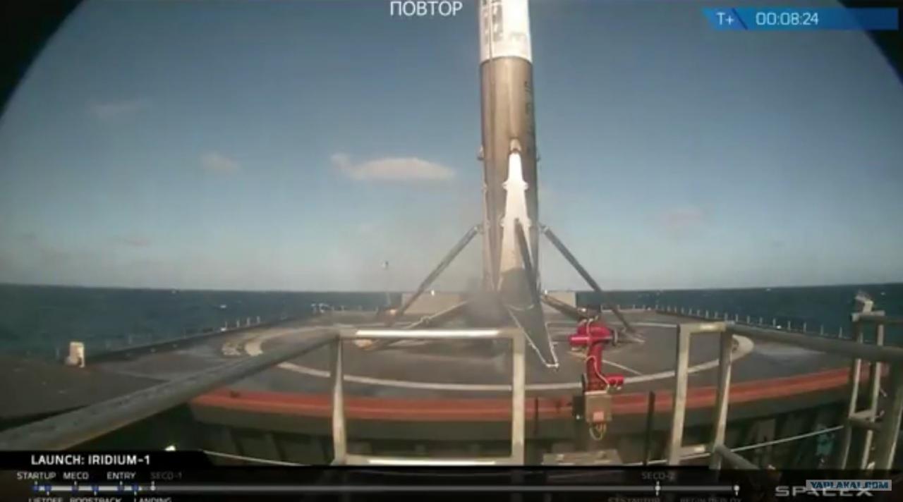 Через 8 минут 12 секунд после старта 1-я ступень благополучно "села" на плавучую платформу.