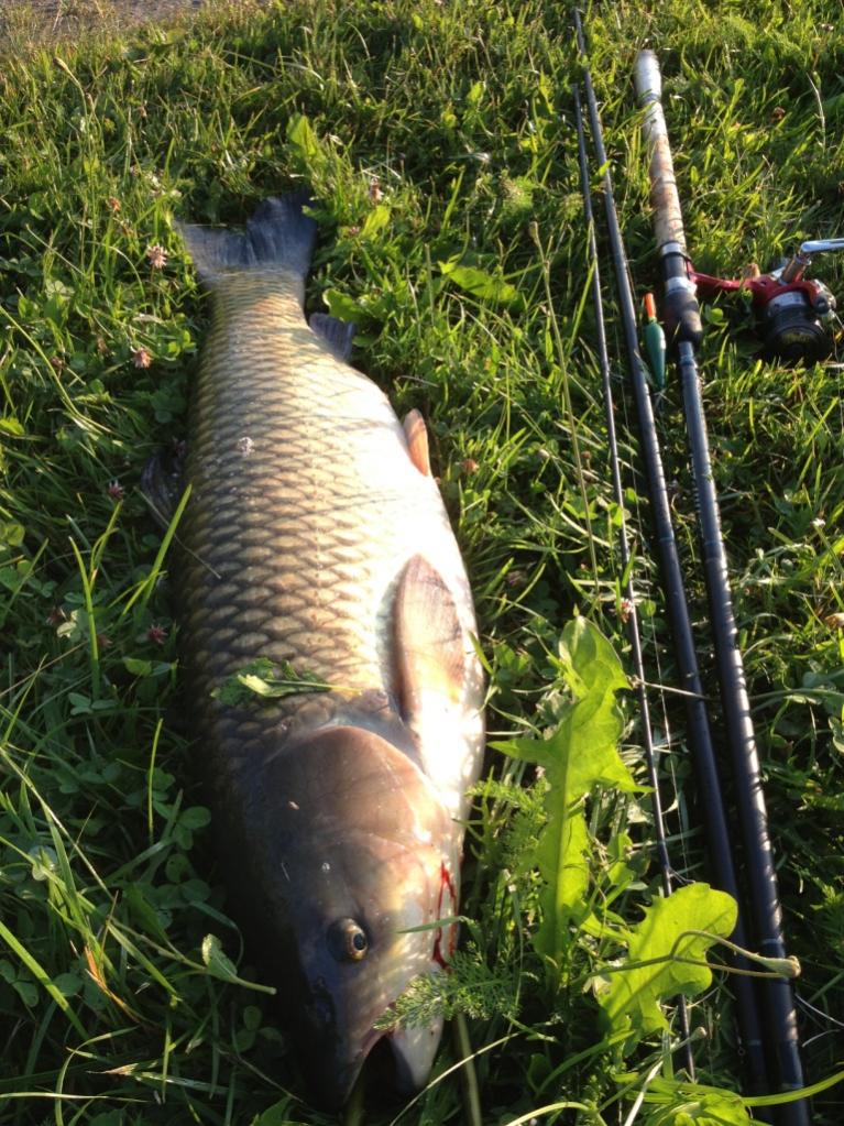 Прохожу еще метров 50 и снова явные признаки присутствия «вегетарианца»…Прицел, заброс, подтянем поближе и …мгновенная поклевка! Поплавок еще был в движении при подтяжке и тут же ушел в обратную сторону…Мягкая подсечка и фрикцион обозначился… начал отрабатывать рывки… Спиннинг прогнулся сопротивляясь напору крупной рыбы… Пока рыбина атакует и мотает метры своей свободы надо подготовиться к встрече. Подсачек уже в воде и ждет своего «часа»…