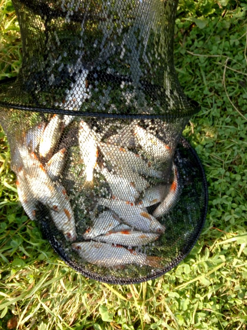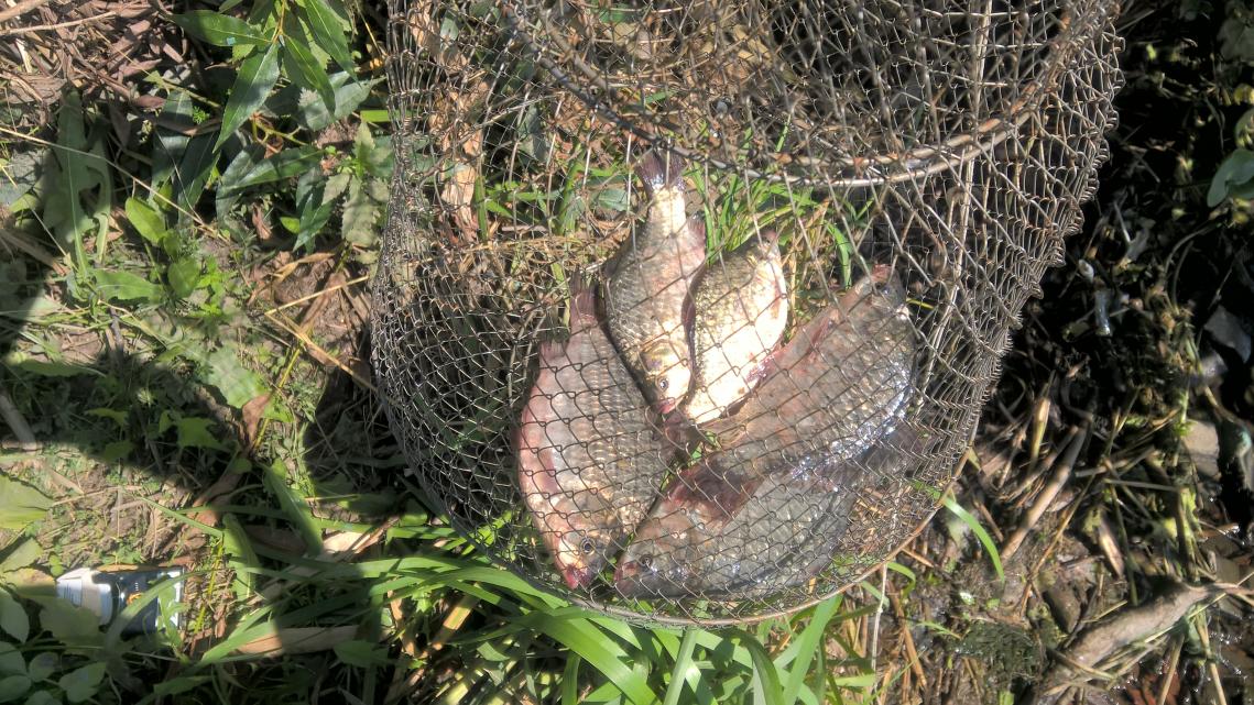 • Сегодня с 6 до 10. Близко к сливу Криницы. Фидер, макарошки. В кормушке лещ арахис. А вот ловился только фанерчик и плоточки, и то изредка. То ли луна полная, то ли канализация с перебоями работает. Все отпущено.