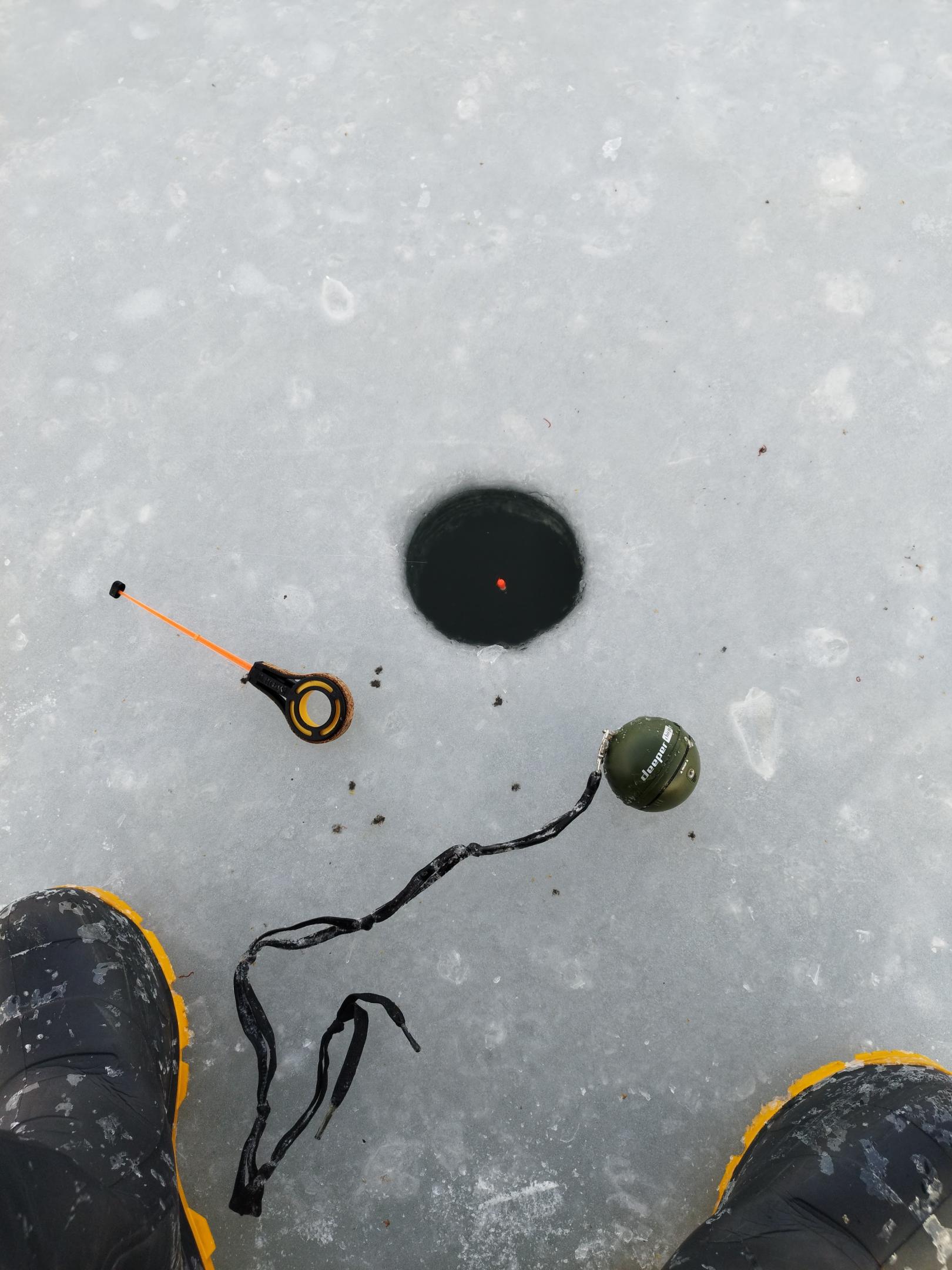 ​​​​​​Кормил плотвиной сыпухой. Четыре лунки в нижней точке русловой бровки на глубине 4,5м и еще четыре чуть подальше от бровки с плавным понижением глубины до 5м. На пяти метрах поклевок было гораздо больше, две лунки на четырех с половиной так и не разловил. Думаю, там живуть лящы и не бяруть)))
