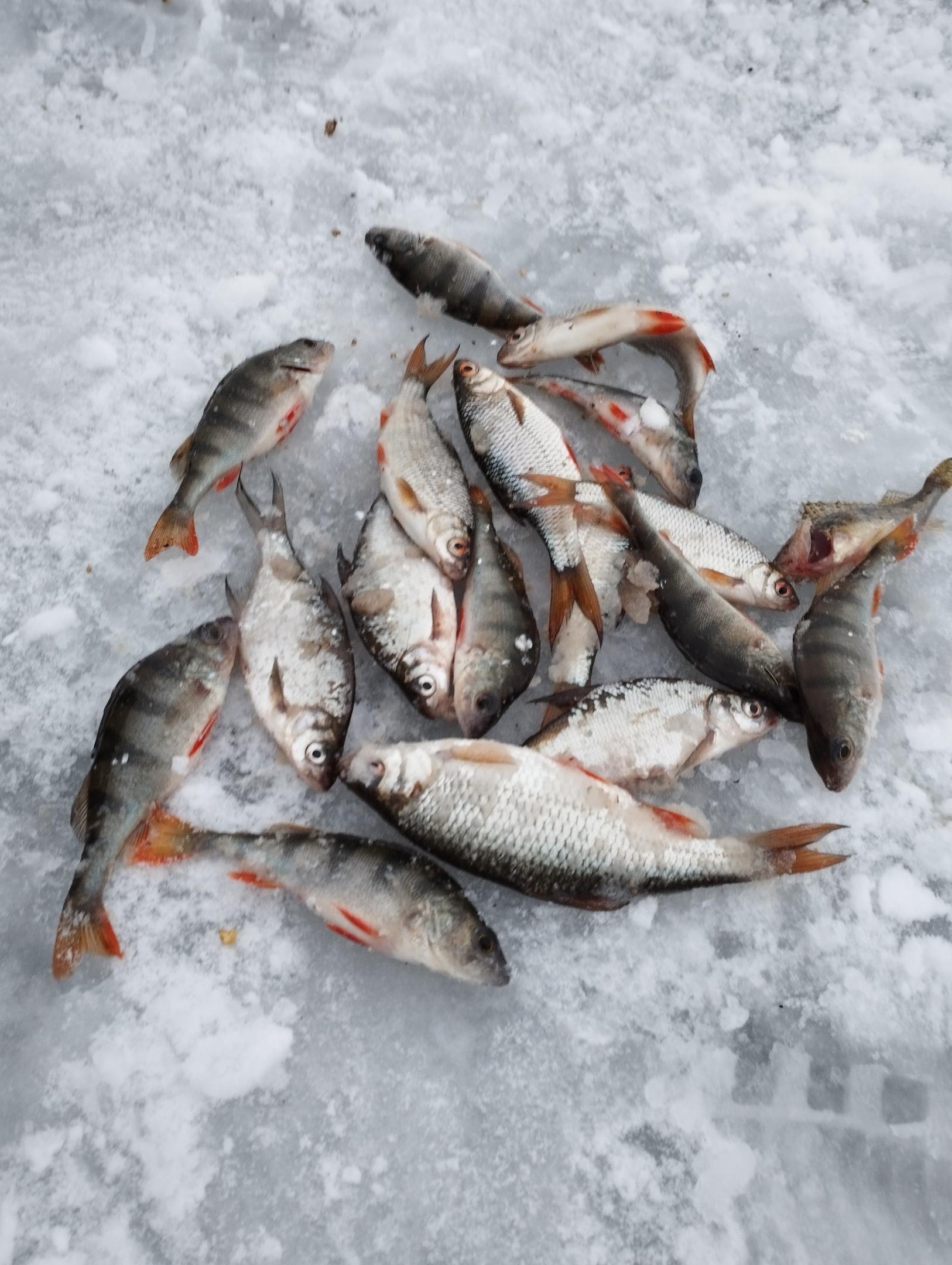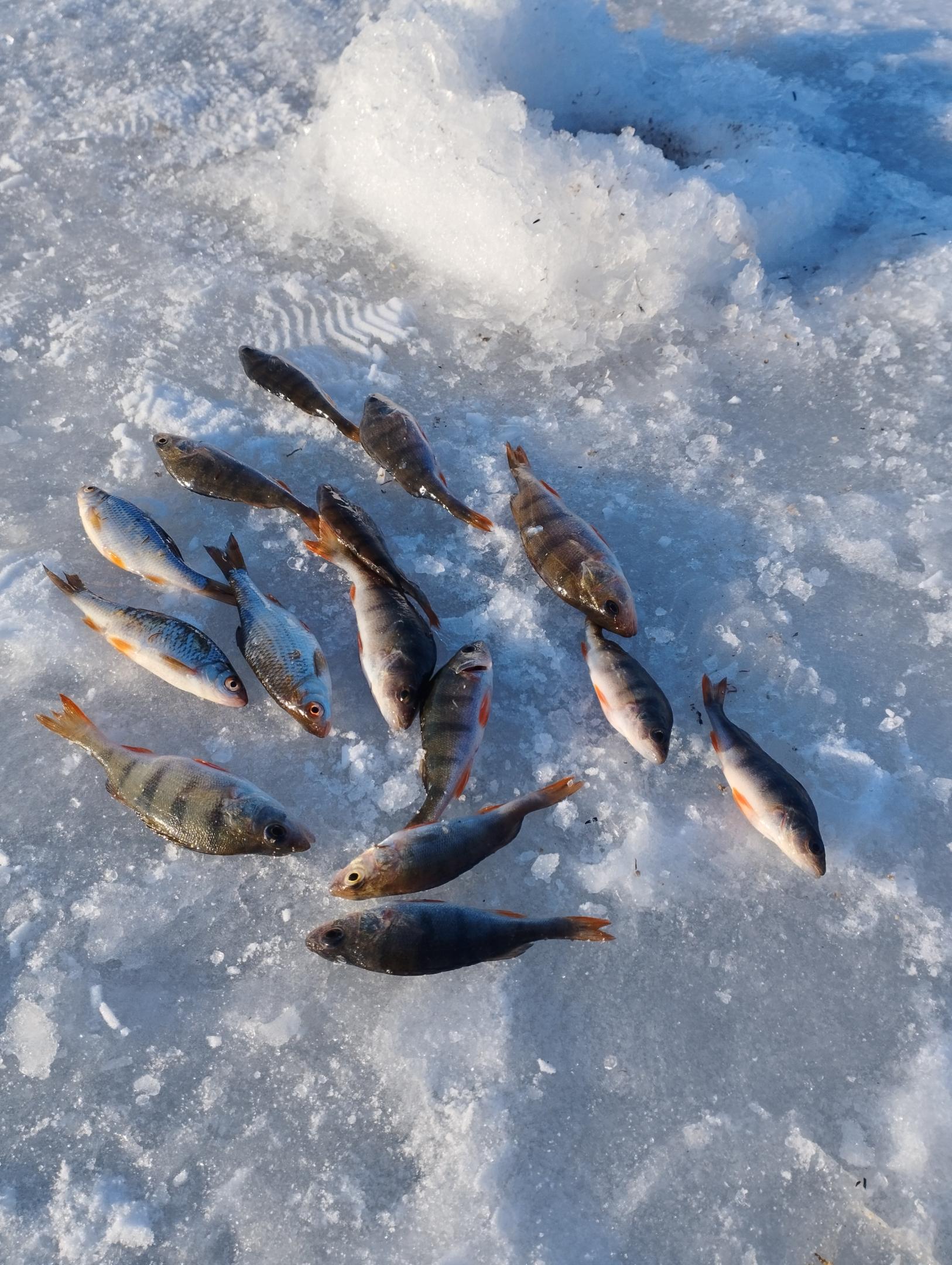 • С утра и до 15ч. Десяток мелких окушков и пару таких же плоток. Лед крепкий. Выход со стоянки за кольцевой сухой. Народу почти не было. Кормил готовым RS с добалением лимана.