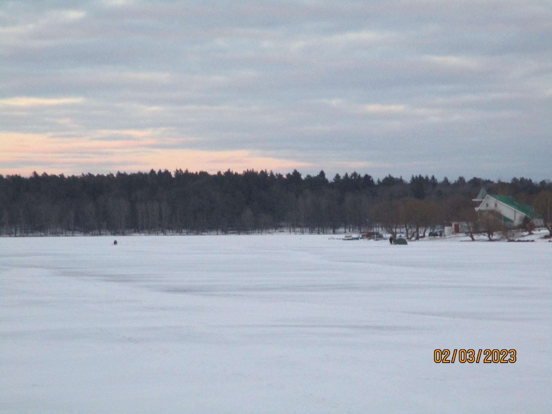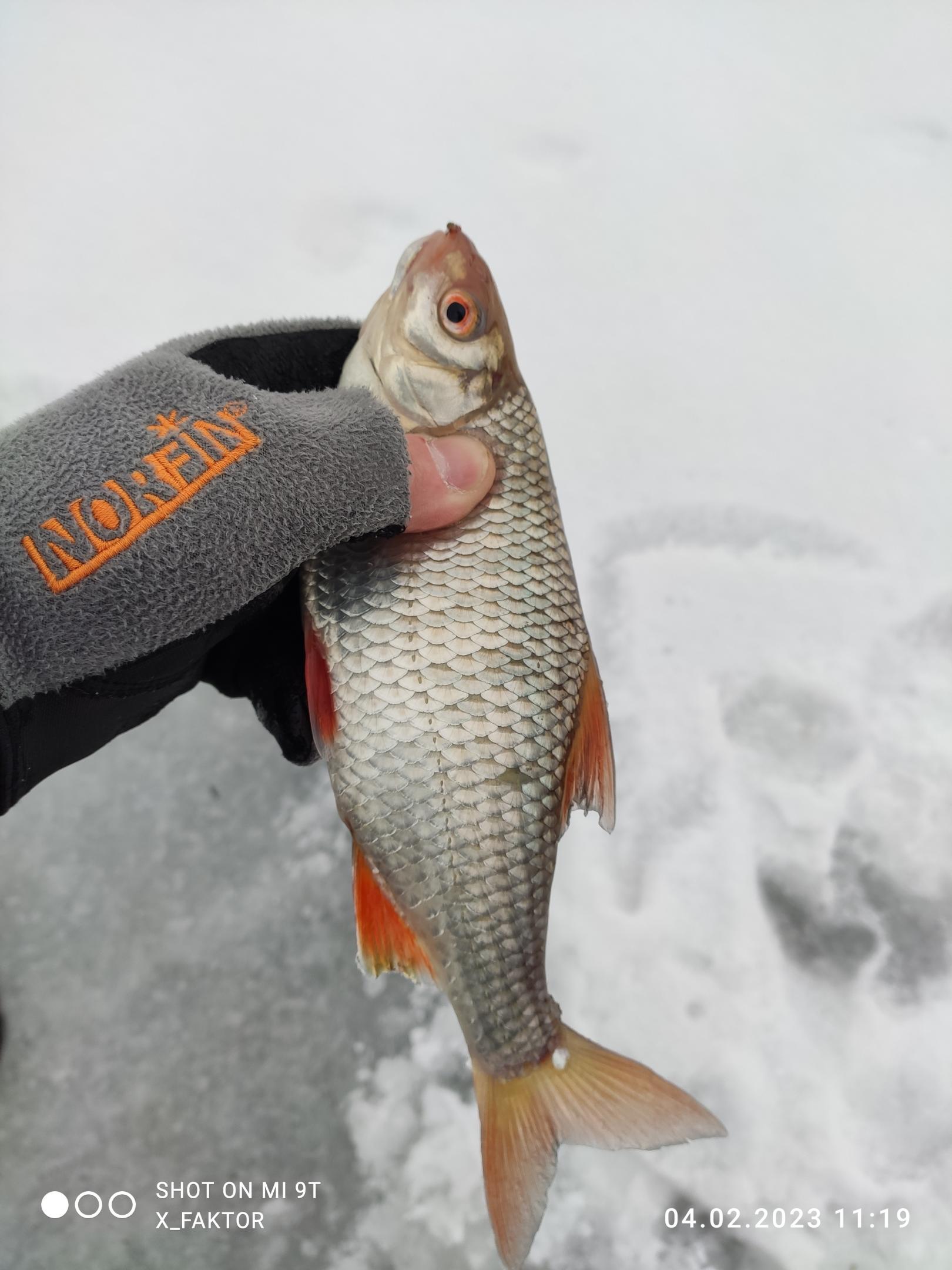 • Нажмите на изображение для увеличения.  Название:	IMG_20230209_162414.jpg Просмотров:	0 Размер:	466.9 Кб ID:	4446767Сегодня ловил с 10 до 16, точнее пытался ловить белую рыбу, закормил 7 лунок на русле, глубина около 4,3 м, на кивок, мормышка-мотыль. Первые два часа полный штиль, затем начали иногда проскакивать небольшие окушки, одиночные поклевки и то не во всех лунках, случайно изловил три небольших плотвички рыба совершенно не активна. Даже окунь клевал на стоячую мормышку. Не клевало у многих. Лёд в порядке, крепкий.