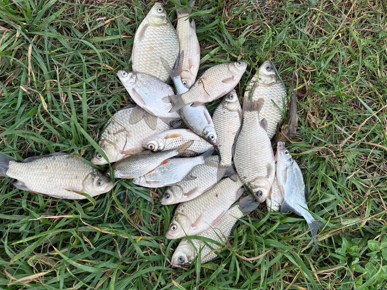 • Тоже решил проверить карасей.ллвить начал после 9ти.1.7 метра,подошла мин через 20 после закорма,на дрейфующий поплавок оч активно начала клевать мелкоплотва,грамм по 20.спустя ещё часик подошли и карасики.все оч мелкие.были и фанерки и тоже недомерки.всю рыбу топил,а карасиков начал собирать для подсчёта,ни одного съедобного увы...