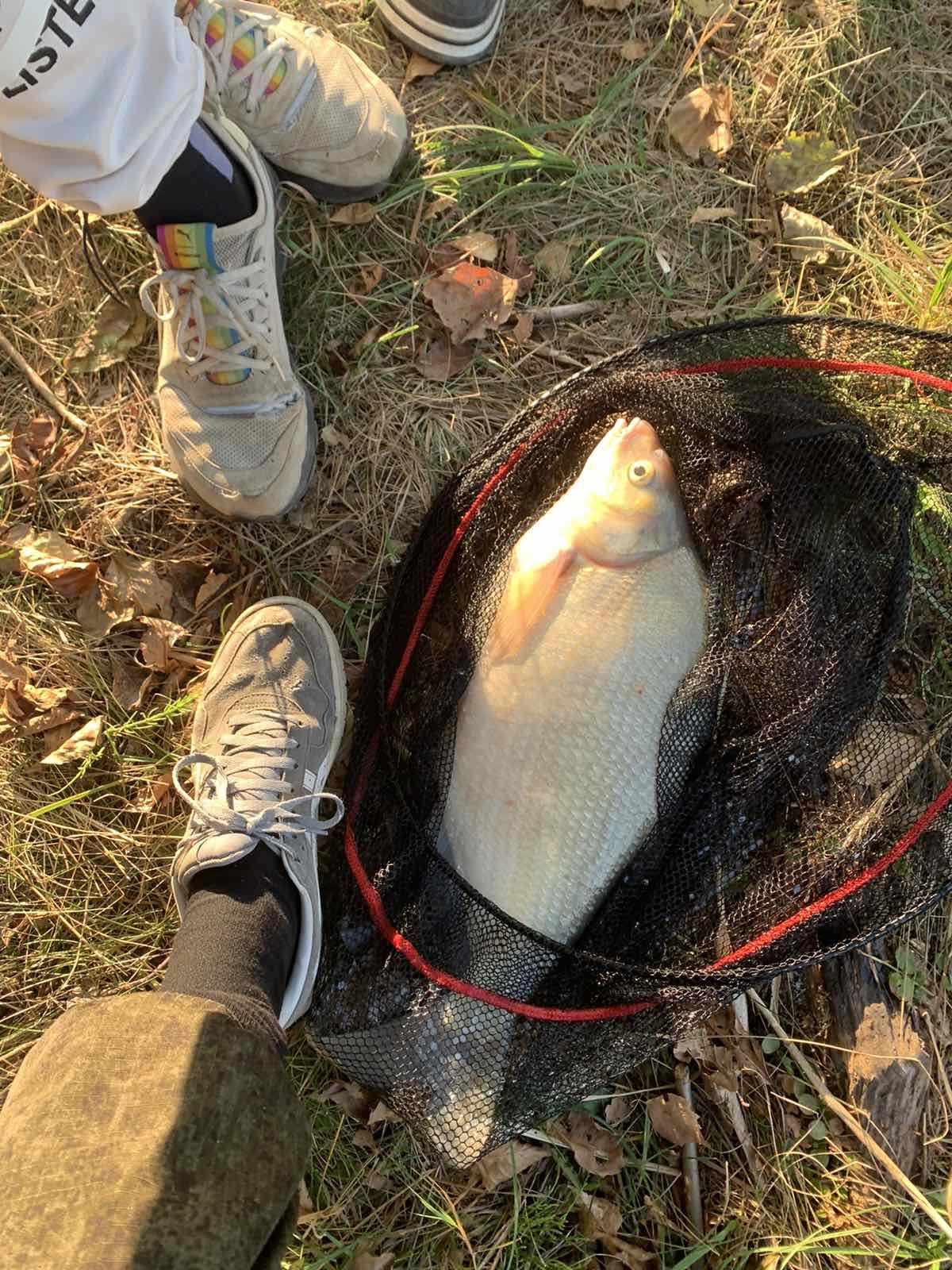 • Вчера добрался наконец-то с матчем на 91-ю дамбу. Фикса, оснастка 6г, дистанция 17 метров, глубина около 3,5. На прикорм пачка сыпухи лещ бісквіт, семки жареные молотые, сухари и все это 50/50 с землей. На крюк мотыль, цветной опарыш, перловка и червь для потенциального карасика. Поклевки начались сразу, микро лещ клевал с каждого заброса, на все, даже на червя, на мотыля поклевки еще на падении. Иногда на перловку попадалась такая же мелкая плотва. И так всю рыбалку. Из бонусов карасик грамм 200 на перловку, и еще одного чуть меньшего забагрил за пузо и вытащил, думал лещ сел без поклевки:)