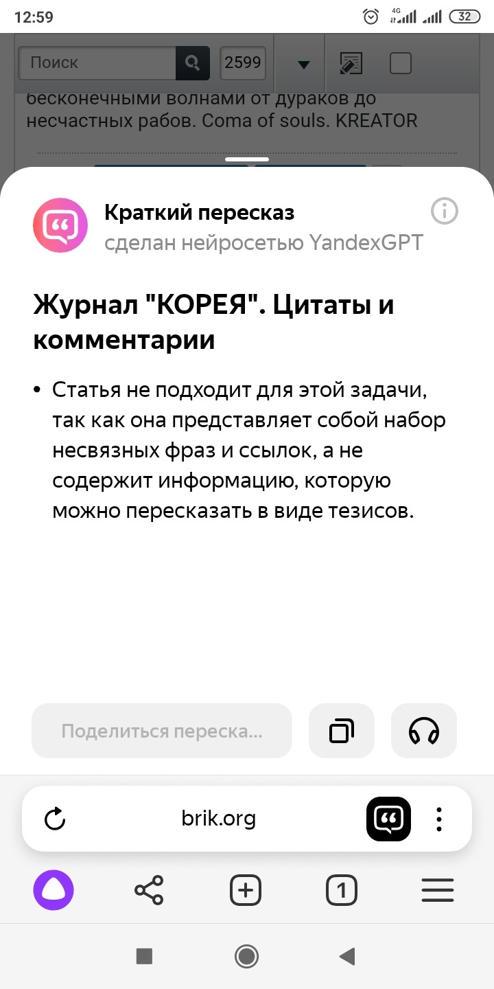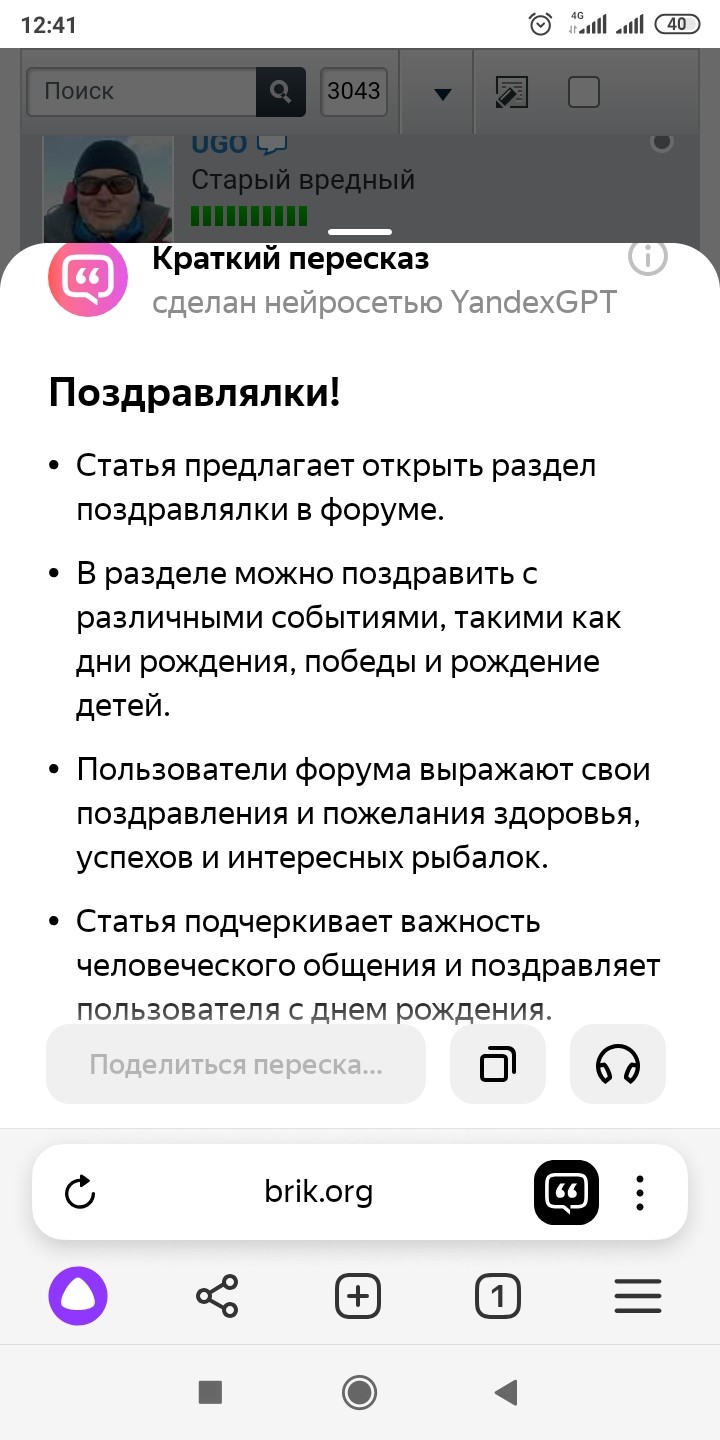 А всего-то, листая ту или иную страницу форума, нати́снул на чёрненьким выделенный в скрине квадратик, на две эти запятые перевёрнутые, и получал на выходе краткий пересказ, сделанный нейросетью, к странице или какому-либо отчёту или комментарию на странице этой )