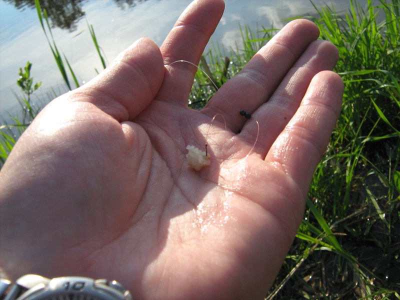 3 "грецких ореха" в докорм... а затем через каждые 20, 30 мин. ... поклёвки есть но пустые, лишь иногда приносящие плотвичку стандартного размера 3/4 ладошки...