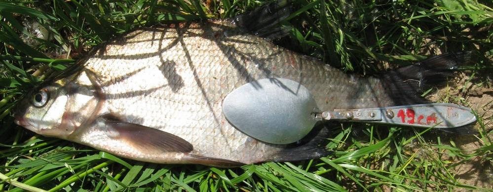 Поклёвки на каждом забросе... порой слишком явные... рыба придерживала насадку и не спешила её заглатывать... лишь пауза перед подсечкой приносила единичные экземпляры... на очередной осторожной поклёвке после подсечки, ощутил удар "по губам", такое ощущение, что крючок отлетел от удара о камень... "каменные губы" на некоторое время явно снизили активность собравшихся за обеденном столом...Пойманная уклея доставила массу удовольствия... та что поболее 19см. без хвоста... если бы кто то сказал , что здесь такая водится, не поверил бы...