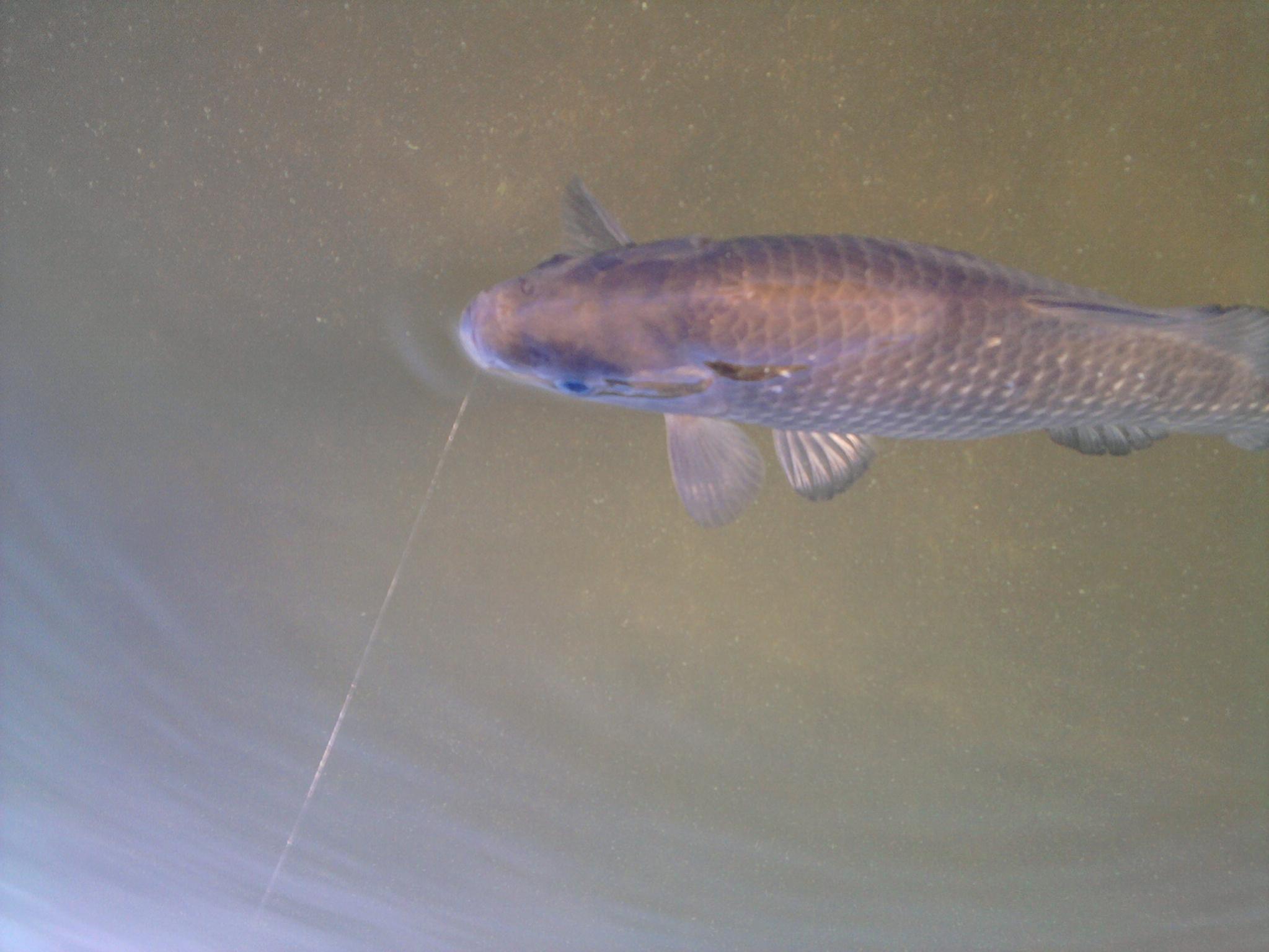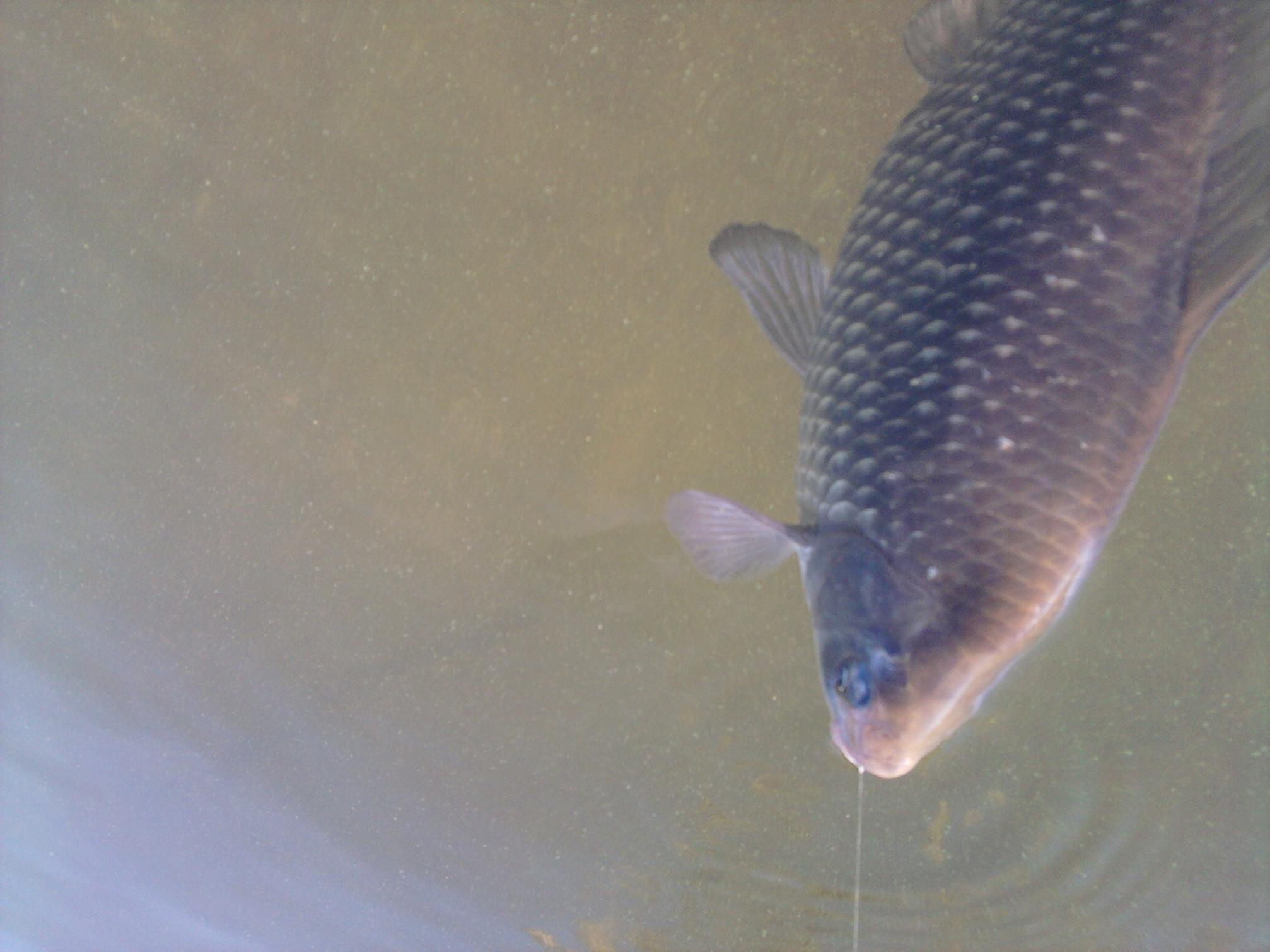 Но держит..Самая опасная трава позади почти, уже вышел на чистую воду.. Не всплывает..Хитрый чёрт.. Появилась уверенность..Карась просто ходит кругами, и я кручусь вместе с ним..Как в игру играем..:D Наконец таки всплыл...Ба...:o:o:o Ну и тарелка...Кило не меньше.. Млять, а как взять то..???