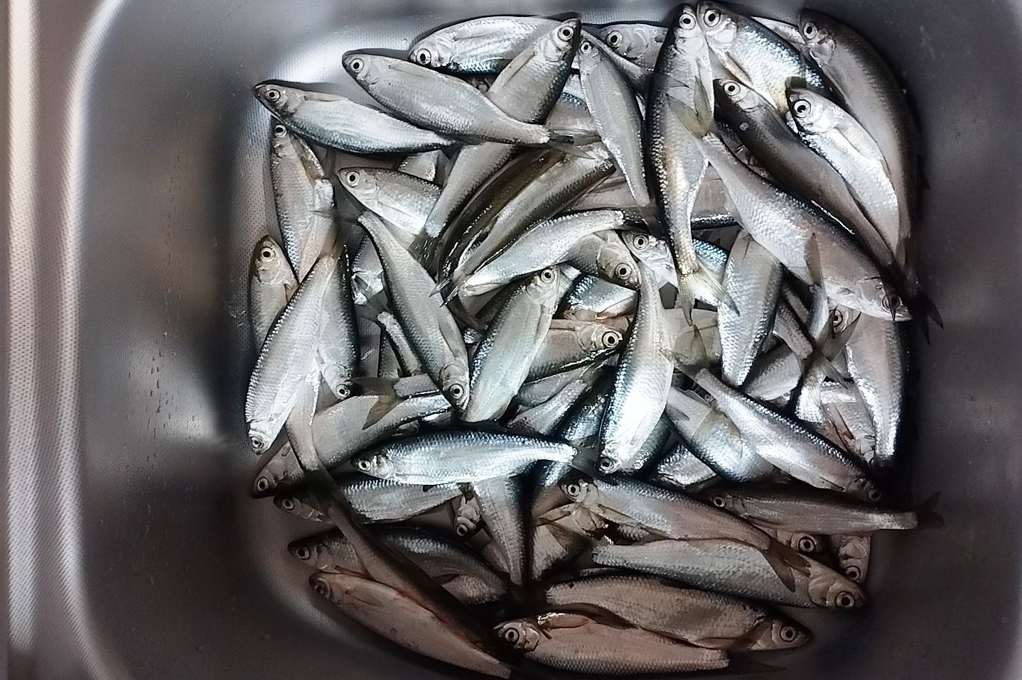На дамбе ловил минут на 20 дольше, чем прошлый раз, сел на 5 метров левее, словил 1,5 кг ровно (на 50 г больше), 67 шт. (на одну шт. больше). Мелочи меньше, но клевало более проблемно, набегами. Был сильный ветер порывами: или боковой справа, или в лицо, очень мешал ловить - легкий поплавок постоянно перехлестывался при забросе. Справа рядом пара ребят тоже ловили уклейку и довольно любительски-профессионально, т.е. тоже существенный фактор отвлечения рыбы. Но опять же - все замечательно и прекрасно. День прошел не просто так и однозначно в плюс. 30 шт. на два раза пожарить (самая крупная - 36 г), 12 шт. мелочи на шпроты, остальное в засолку к прошлому разу.