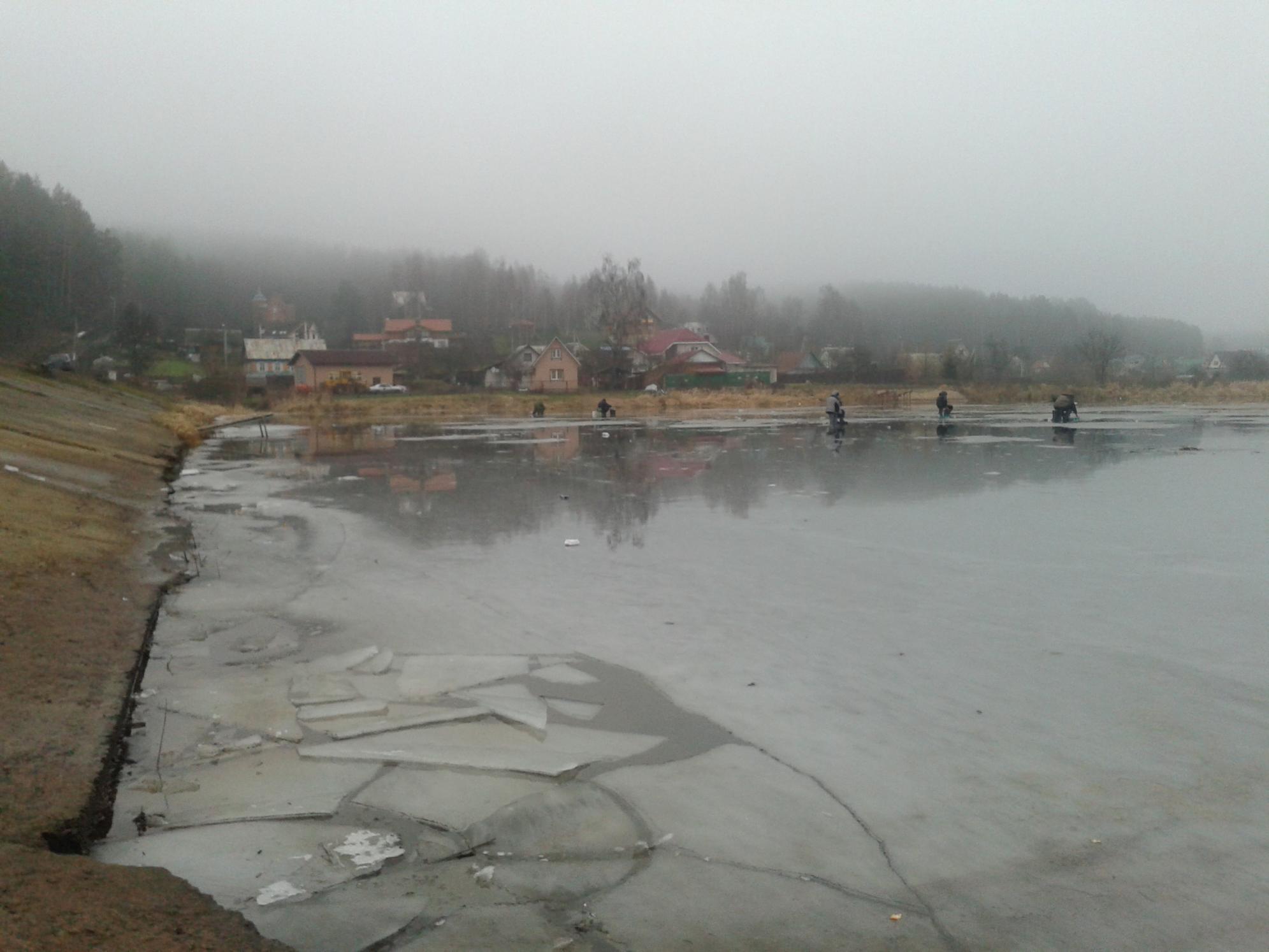 лёд не трещал, вдвоём стоять можно,но нежелательно....5-6см .потрескивает при заходе с берега. Клёв отличный...и на третьем фото САШИ КЛЕГА пингвин в зелёном комбезе это Я:cool: а на Прилепской дамбе такая обстановка