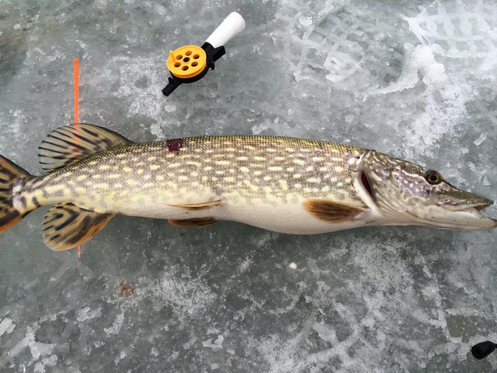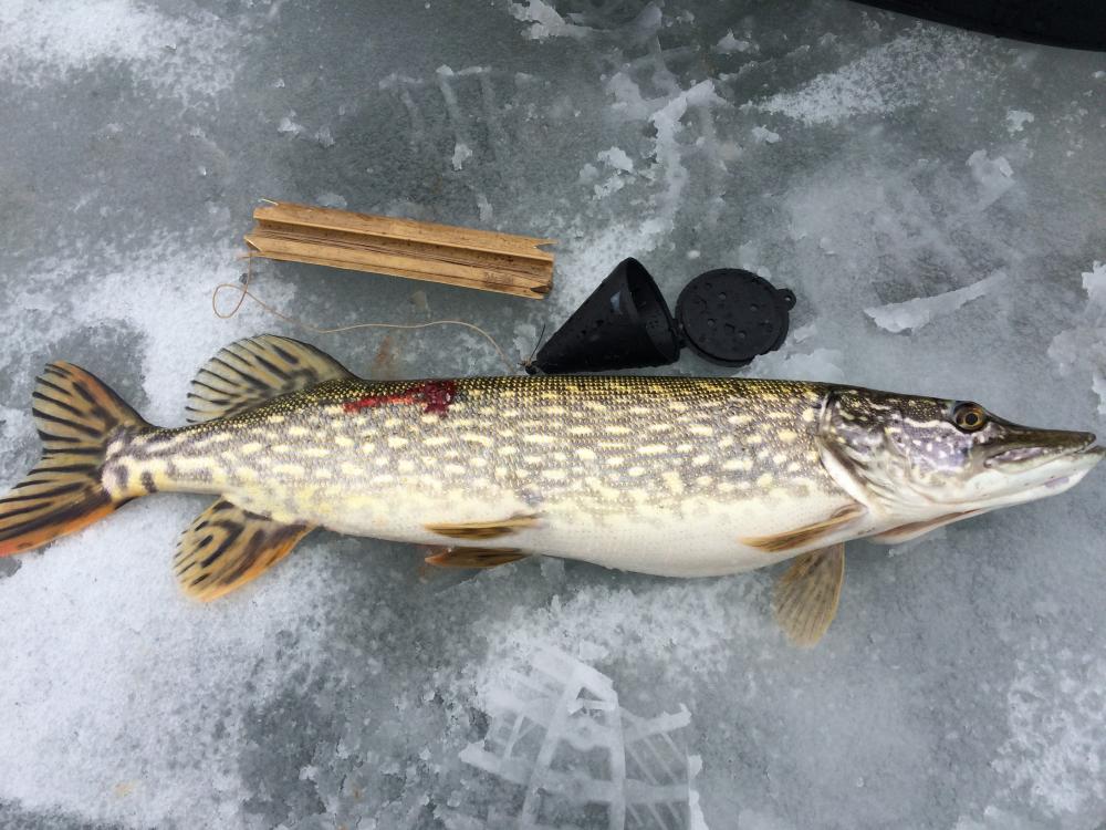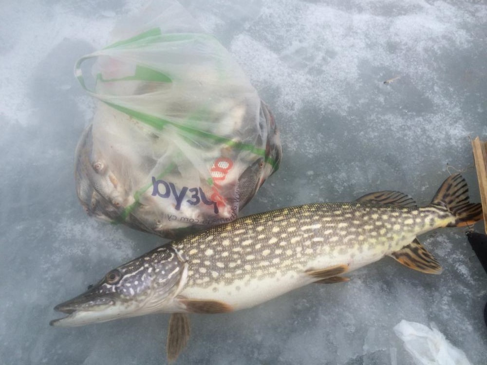 ID:	3726386Был сегодня с 8.30 до 16.30 сразу за ЛЭП. Хороший клев плотвы - чуть похуже утром, после 12 поклевки быстрые и уверенные. Словил 104 плотки и одного подлещика, все на манку. Общий вес около 4.5 - 5 кг. Из интересного: в 12 плотвичная поклёвка на манку, подсечка и на том конце зацеп, который достаточно быстро рванул в сторону - еле успел стравить 3-4 метра, пока он не остановился. В этот момент вспоминаю, что утром решил не обновлять оборванный на прошлой рыбалке поводок 0.08 и оставил основную 0.10 - значит шанс в борьбе с лещом есть. На минуте 10-15 перетягивания каната меня начали посещать сомнения по поводу того, кто на самом деле ведет борьбу со мной на том конце лески - слишком уж сильной была рыба, очень медленно она утомлялась - правда, до этого больше 1 кг лещей я не ловил. Через еще минут - 5 пришли брать плату, попросил достать деньги из кармана самостоятельно))). В какой-то момент заметил, что рыба на том конце переставала что-то предпринимать, когда я прекращал выбирать леску и и активизировалась лишь когда до лунки оставалось 3-4 метра (глубина там 6.5) видимо, оппонент все-таки начал сдавать. Еще минут через 5 (а может и 10, следить за временем я уже перестал, но устал уже конкретно) я наконец-то увидел своего соперника - пятнистое бревнышко, которое встало поперек лунки с крючком в заднем плавнике. Попробовал багром - никогда его раньше не использовал, всегда доставал щучек, попавшихся на ставки, руками. Еще одна попытка - рукой схватил за хвост, результат предсказуемый... Далеко щучка уже не уплывала, видимо, совсем утомилась. Еще одна попытка рукой и возвращаюсь к багру. Со второго раза забагрил за живот и хвостом вперед вытянул...вышел из палатки подышать воздухом. По моим ощущениям 2-2.5 кг, на весах не проверял. Фото позже. На ставки за день 3 сработки, 2 с хорошей размоткой, но не судьба. Такое вот закрытие сезона. Лед весь в пузырьках, долго не простоит.