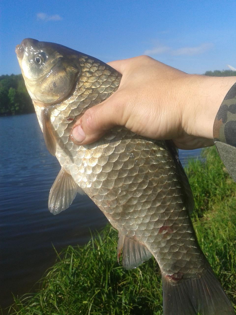 • Был сегодня с друзьями на Малых. Плотва брала очень слабо, видать ещё не отошла от позднего нереста. Зато проклюнулся карасик и не плохой, а потягать такого разбойника, да ещё на деликатную махалочку, ещё то удовольствие! Поклевал правда всего пару часиков с восьми до десяти, но 16 штучек успели в садки пристроить. Все "ребята" достойные, а самый больший завесил 640 грамм. Ловили на перловочку, кормили плотвиным миксом РС-ки и Трапера , разбавленными местной землицей.