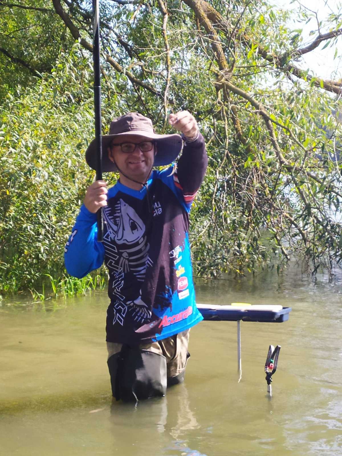 С дистанцией сильно не заморачивался , некогда , главное чтоб без травы и зацепов , но и к берегу не жался , народ купается . Хотя ... В общем вышло примерно метров сорок от берега (ну 50 максимум) , дальня точка метра на два глубже ближней , ловил на два фидера . Со старта по три-четыре кормушки без поводка и с пятой в бой ! На ближней точке сразу же поклевка с солидным загибом
