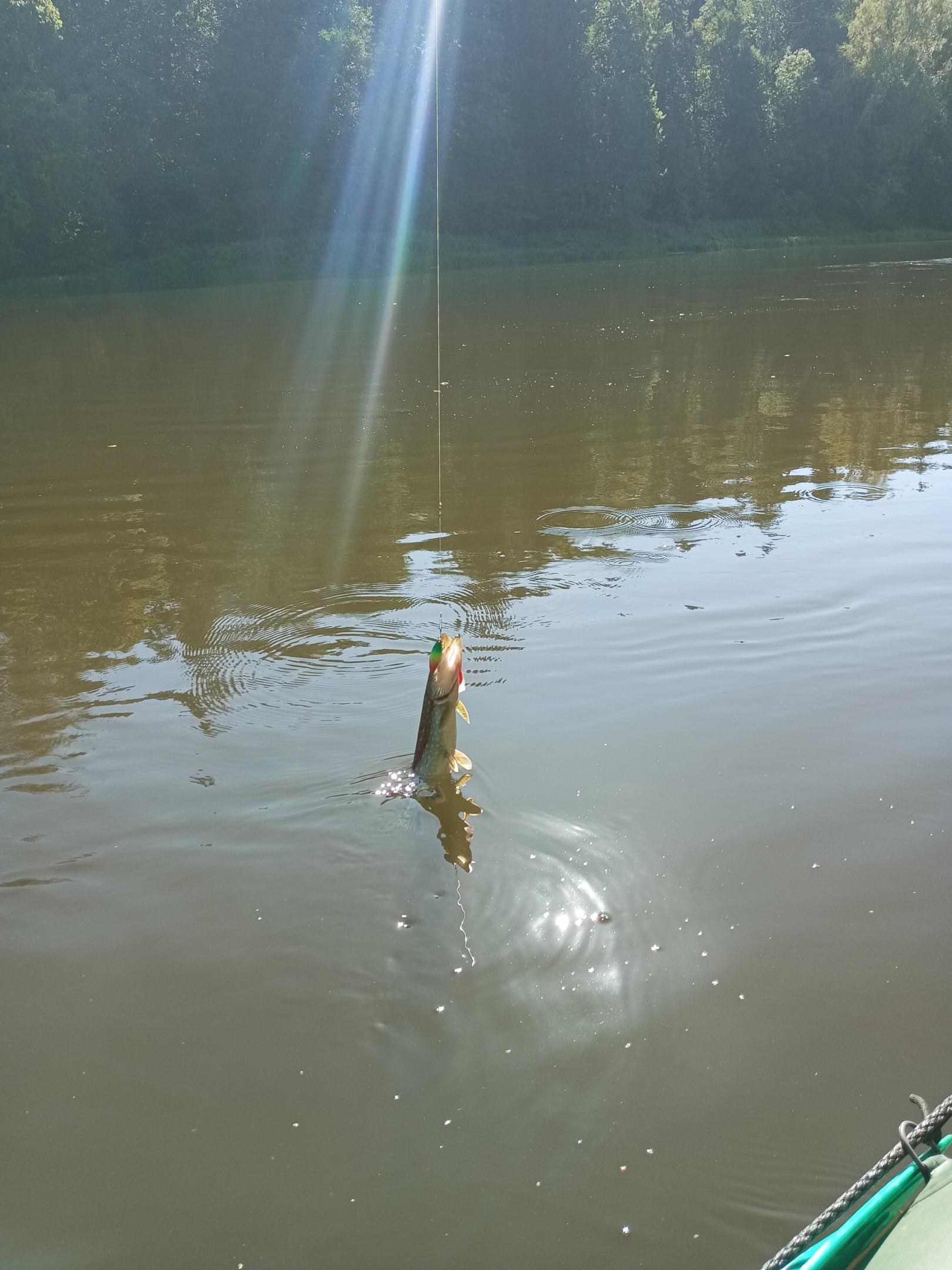• Поплавали немного по Свислочи в воскресенье. Вода кипела от жереха с самого утра, но приехали не за ним. Комаров тьма. Щука клевала в основном на приманки 100-115 рамера кислотных расцветок. На мелкие приманки думал будет клевать окунь, но за целый день ни одного. Много ужей плавало по поверхности реки.