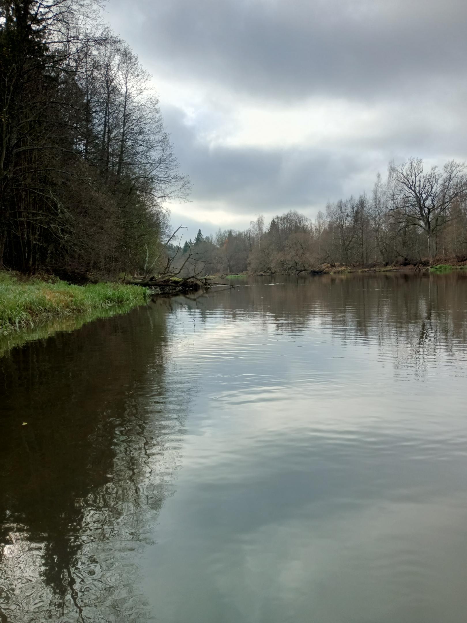 В планах сегодня было посетить р.Свислочь в поисках хищной рыбы. Но, проснувшись утром и высунув нос во двор дома понял, что планы на рыбалку рушились из-за дождя. Ладно, перенесём рыбалку на завтра...но, после 11.часов дня небо чуть-чуть прояснилось и дождь прекратился. Я на радостях прыг на велосипед и по педалям. Около 13 часов спустил лодку на воду и понеслась душа по водной глади. Кстати, когда ехал к месту намеченной высадки, то дождь не шёл, а как только уселся в лодку, то начался и такой спорый. Но, у меня на этот счёт имеется плащ ОЗК, который спасает в такую погоду.