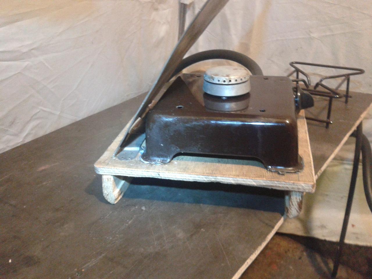 Под горелку сделал подставку и легкосъёмный экран из нержавейки используемый в режиме обогрева