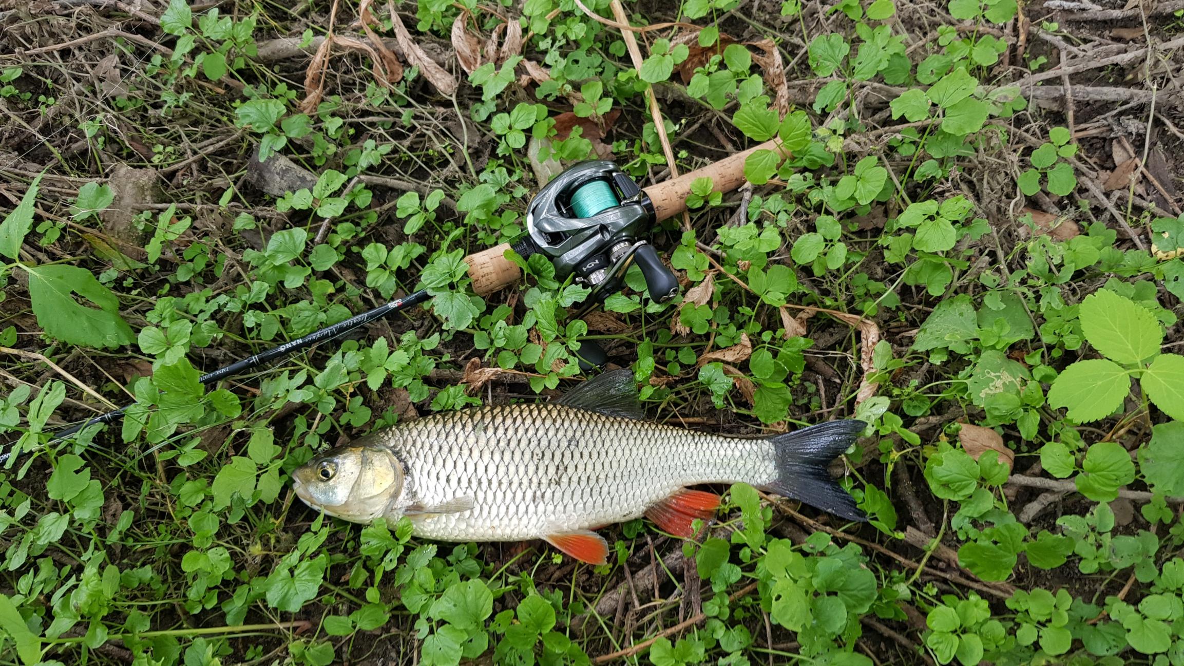 . Ладно, во всём нужно искать свои плюсы: если я уже увидел рыбу => её же можно доловить, врят ли она далеко ушла. Хватало в моей практике таких моментов, что после схода или поклёвки я долавливал хищника (тут уж как пойдет или смена проводок и направления проводки давала результат или же смена приманок). Сделал ещё с десяток проводок джигом - нуль реакции. Дай, думаю, колебалочку поставлю. Заброс, ещё заброс... И вот на дальней дистанции чувствую ЛЁГЕНЬКИЙ зацеп. Такую поклёвку очень просто пропустить, даже не поняв, что у тебя на том конце шнура была рыба (у меня такое бывало: уже дома готовясь к следующей рыбалке обнаруживаешь что джиг который был новёханький, располосован вхлам, а ты думал трава.... корч... камень...). Поэтому в этот раз я сделал подсечку и.... НЕ ПРОГАДАЛ, Приятная тяжесть на том конце лески, выворот у поверхности, пошла на меня.... Есть, родимая, всё-таки я тебя перехитрил!