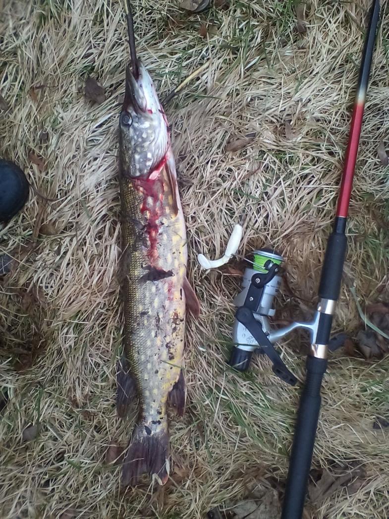• Наконец-то моё недельное противостояние со щукой закончено. Целую неделю , в одном и том же месте она надо мною издевалась. То откусит хвост у резинки ,то блесну выплюнет. Прямо злости не хватает. И вот вчера - свершилось. Эта злодейка ,а вернее злодей ( как оказалось , это был самец ),не устоял таки перед неогруженной белой резинкой. Вес - 1,4 кг. Счастью нет предела. Он целую неделю издевался надо мной ,теперь я его нафарширую и буду наслаждаться местью.