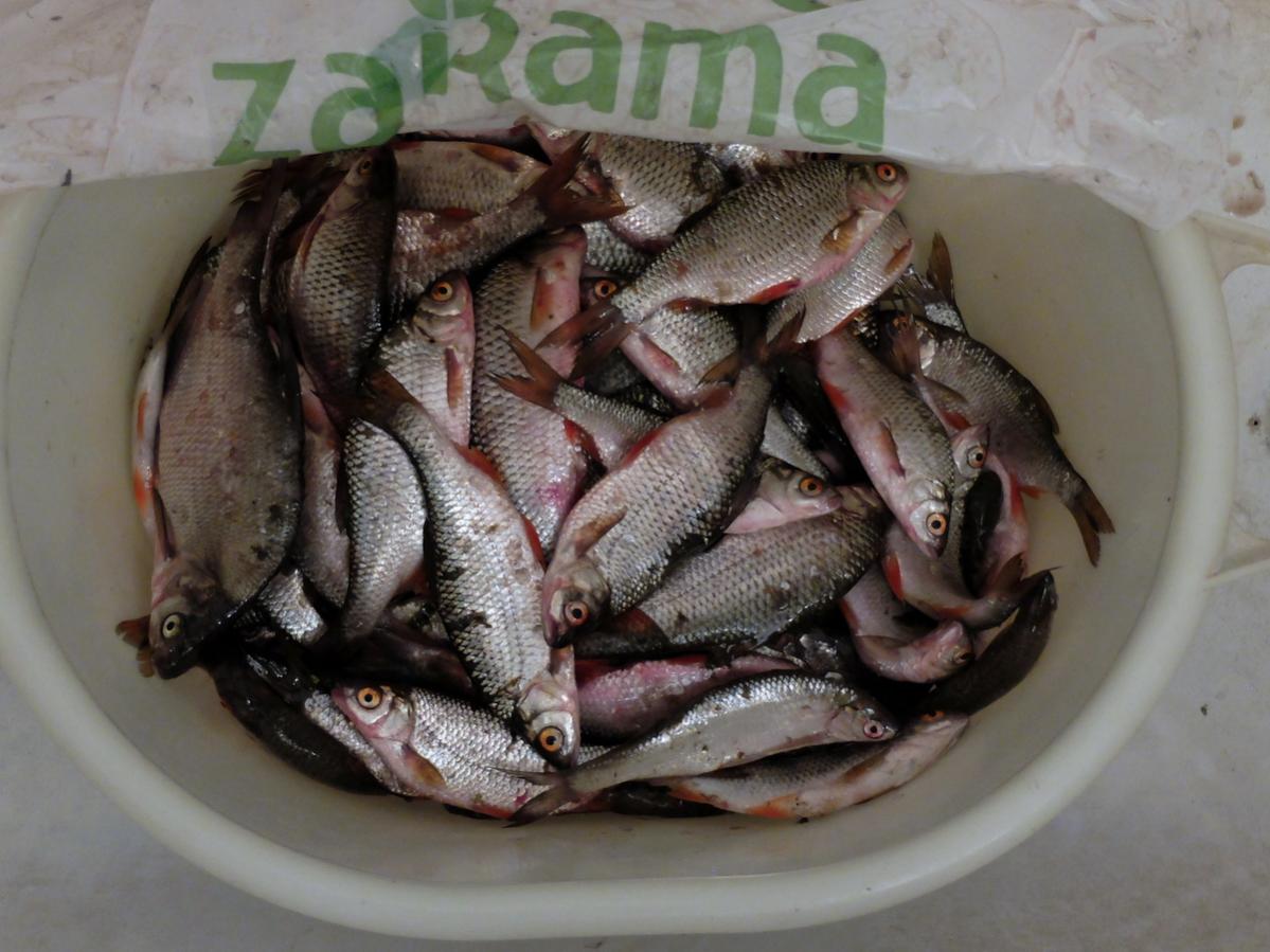 Весь улов в одном тазу.