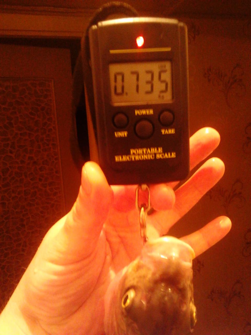 Вес окунька... Правда на честное слово... Товарищ поймал и дома взвешивал...