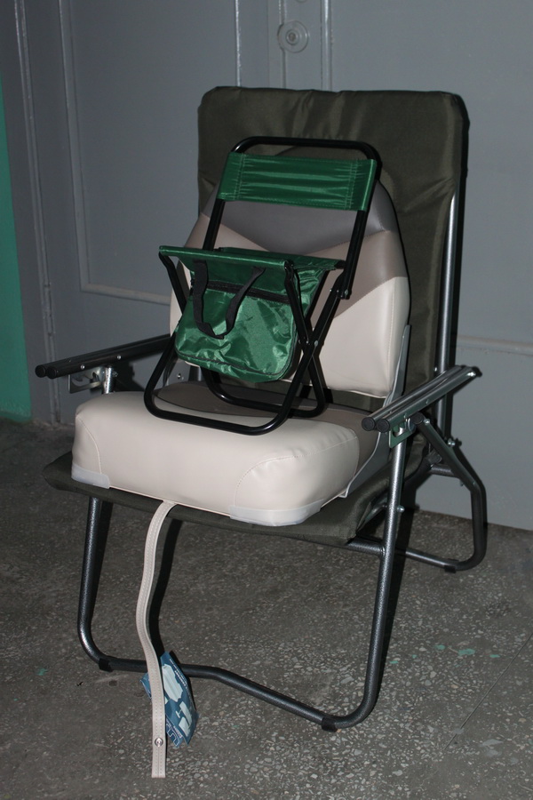 Перефразирую сказку. Никто ещё не сидел на одном стуле и не закрепил его в лодке. А сколько весят все три?
