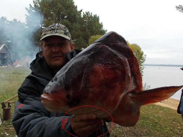 Если внимательно посмотреть на руку, то можно увидеть, что она в 5 раз меньше головы, следовательно и сама рыба была никак не меньше 35 кэ гэ ;) :D