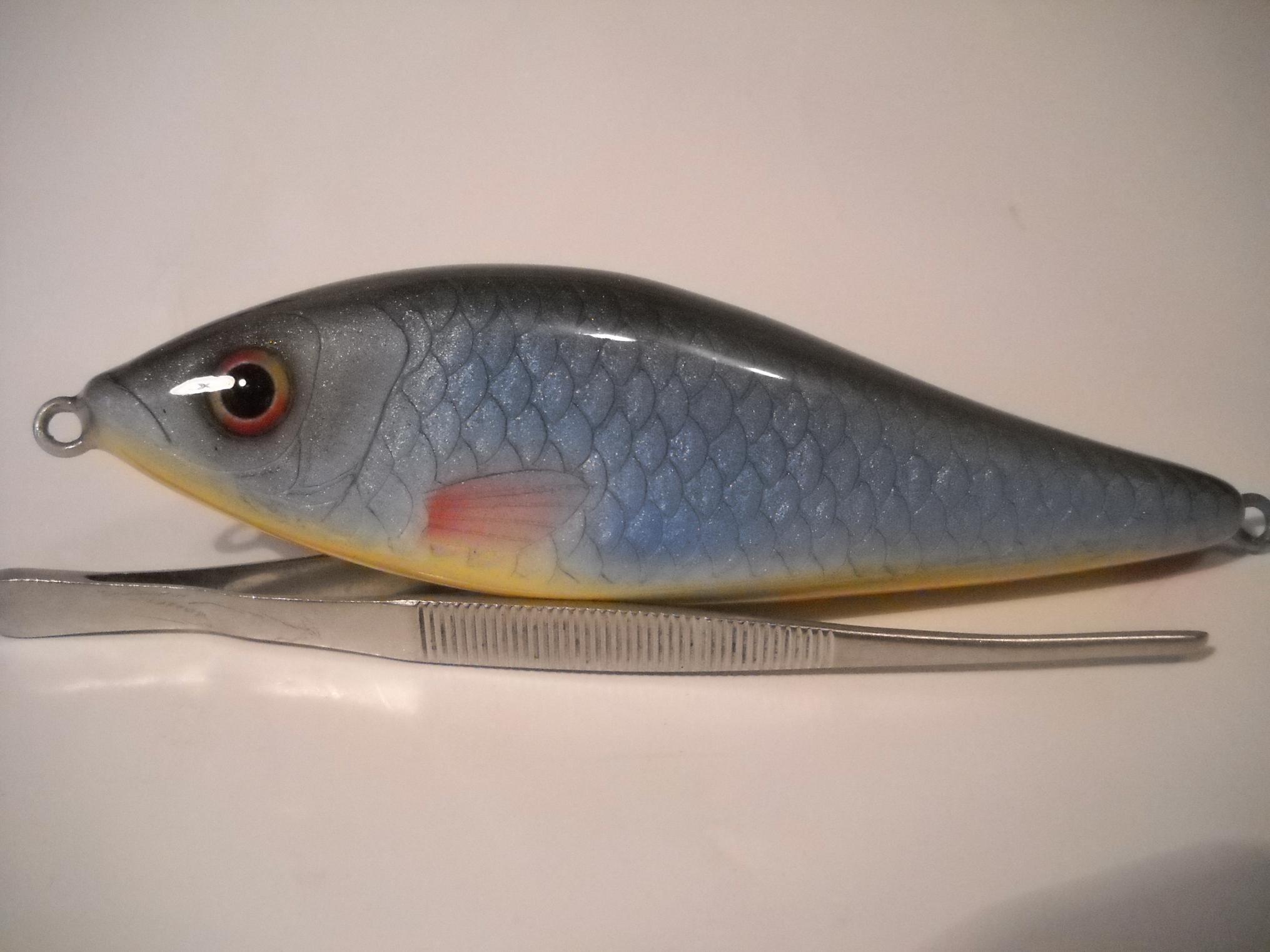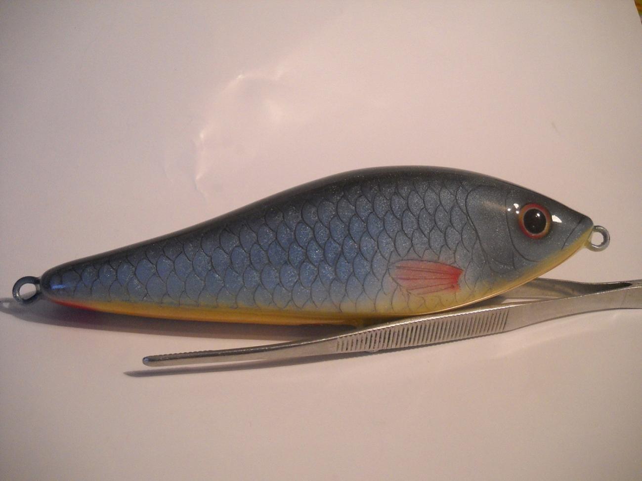 В приманке сделал две петли, та которая на носу служит для ступенчатой проводки либо равномерной ( с хвостом), зацепив приманку за петлю на спине и сняв хвост , приманка начинает работать наподобие ратлина, вес малыша 72гр при длине тела 10см (с хвостом 16см), делал специально для ловли на реке.[ATTACH=CONFIG]305638[/ATTACH]