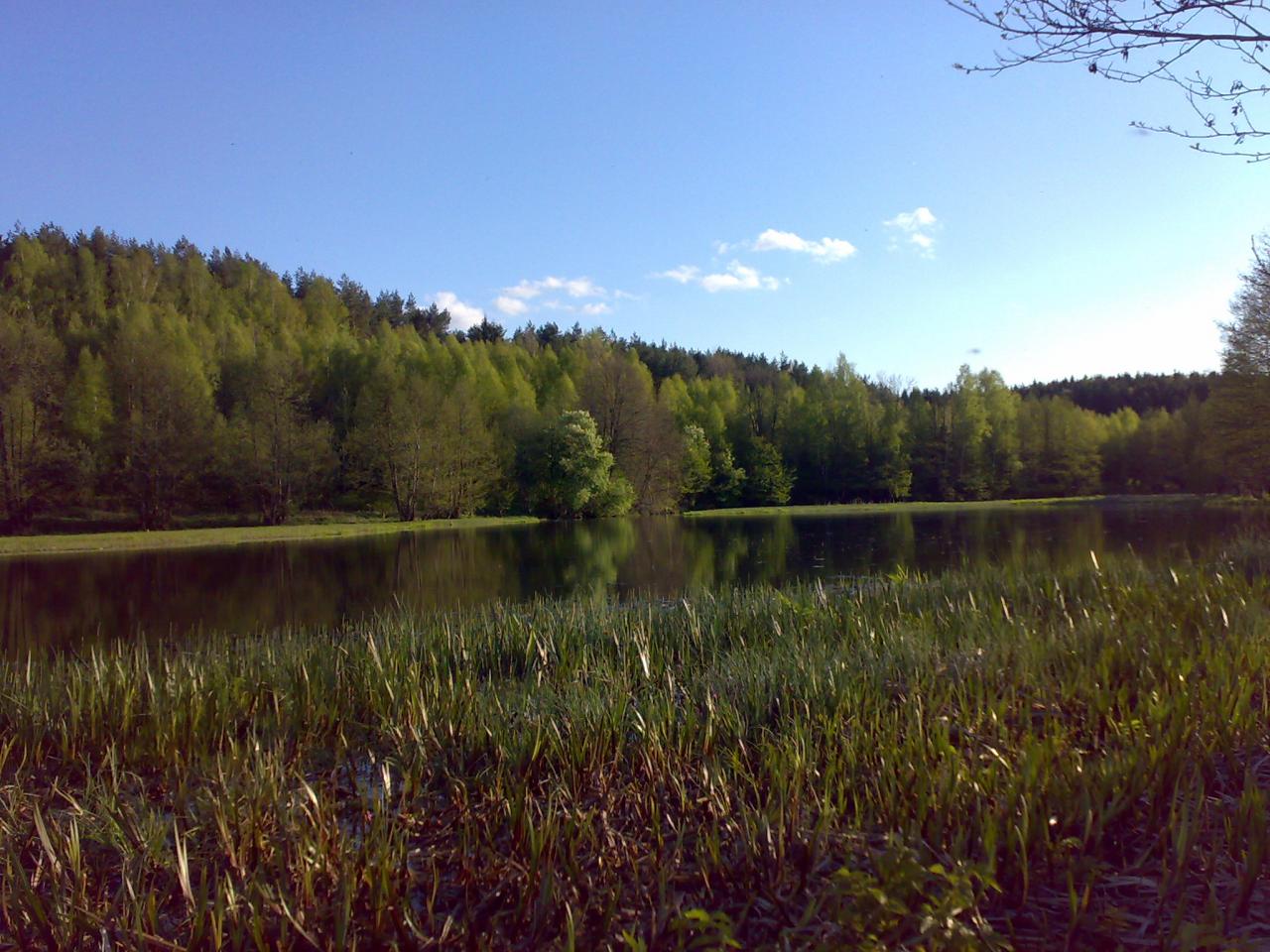 О самом пруду: Довольно большой. Вдоль берега идёт полоса затопленных высохших сосен и живых кустов лозы. Проёмов в этом древостое всего 4-5 на водоём. Народу было с утра машин 5ть. Ловят, что интересно, не забрасывая далеко. Прямо под эти корчи и кидают. Вода коричневая и непрозрачная. Много мусора. С одной стороны примыкает насыпь, за которой действующий резервуар - отстойник с жижей. Она просачивается вдоль основания насыпи этакими вонючими родниками с чёрным содержимым, потихоньку стекающим в пруд.