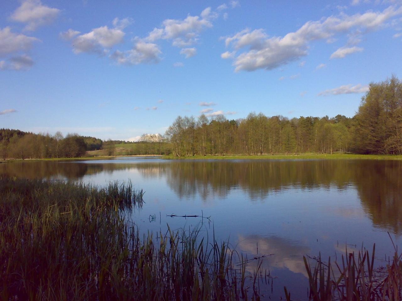 Второй прудик, что на поле, недавно углубляли и чистили. Вереговые откосы свежие. Вода по цвету напоминает какао. Следов пребывания рыболовов нету вообще никаких. Ловить не стал. Посунулся к дому. Спасибо бородатому рыболову на пежо, что подвёз. Такая вот разведка вышла.