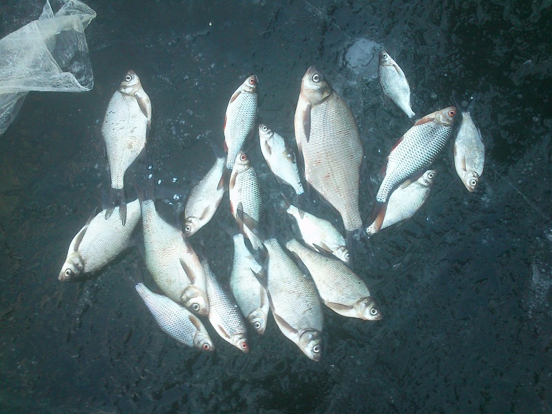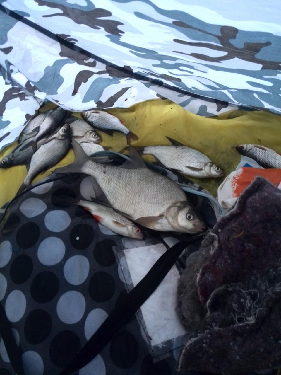 • в пятницу сидел с краю от всех в палатке на 7метрах, кормился с 6-ти утра секретиками, в 10 первыве поклевки за час 5-7 подлещиков большая часть хорошего, в 11 взял товарищ лещ под 3+-0,5 кг, лед был прозрачный подомной видел всея это чудище,и в ужасе как его просунуть в лунку подтягивать чтобы ухватиться, около самой лунки он естественно оторвал тончайшую леску и ушел во своя, дальше поклевки пропали до часа, потом опять проклюнул подлещ и плотва, взял еще с 10-ку, и на последок перед самым отъездом взял на 700-800г хорошего подлещика)