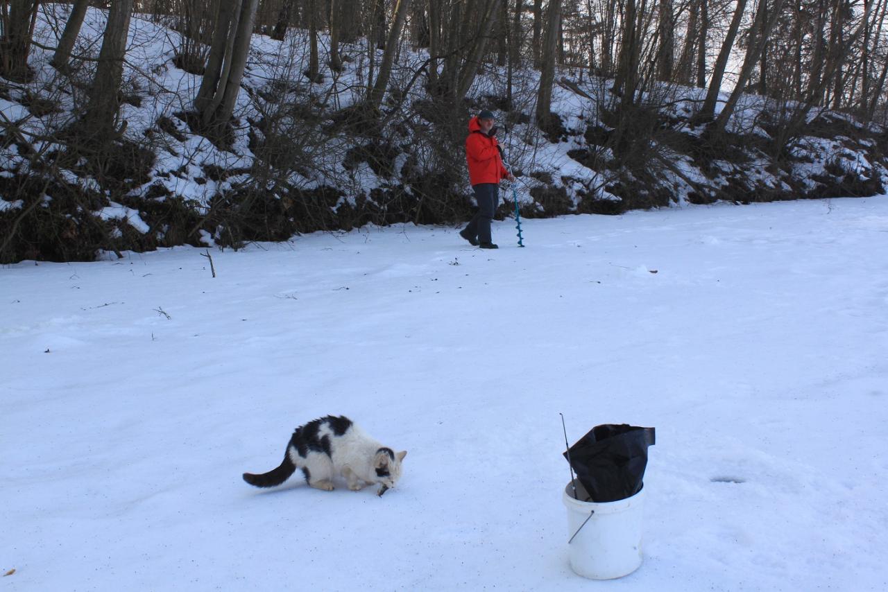 • Прогулялись сегодня с Игорем по домашним водоемам. Погодка супер. На Дубровском десятка три окушков взяли. Потом переехали на Вячу. Фотоаппарат не доставал покуда не появилась местная рыбачка.(кошка) И пару фото.