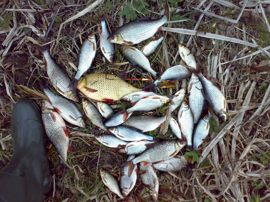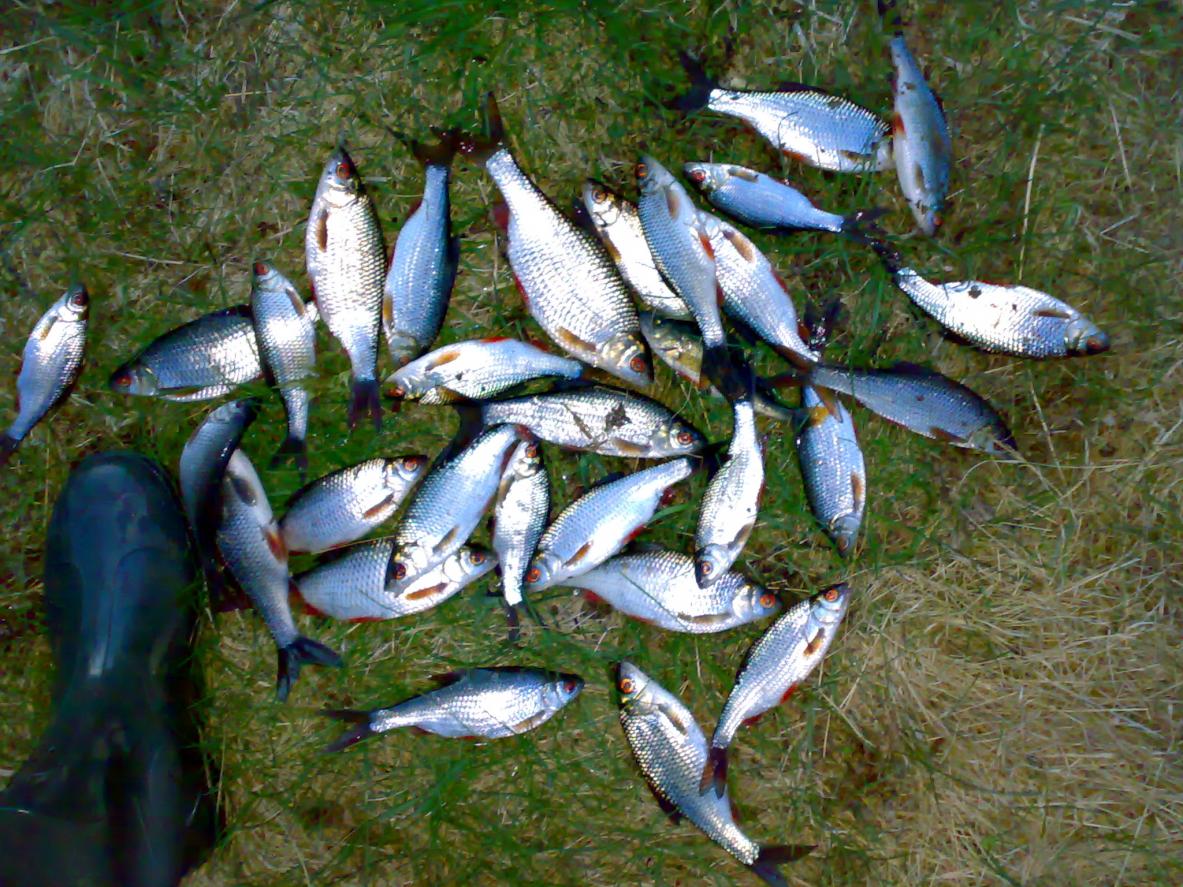 • После посиделок с самого рання на Раубичах решил в обед переместиться на Вячу к мосту (Комсомолец). Приехав радостно обнаружил свое свободное место. расположился, закормил (РС плотва черная, кротовина с лесу) и....ставил плотву на точку долго и упорно, расклевалось ближе к 14-30. Но клев такой капризный и сбивчивый, то резко на утоп, то прижмет и кидает и т.п. и др., реализация хромала -с 5-ти поклевок две с результатом)), сначала желала мяса (опарыш-мотыль) ближе к вечеру чередуя макароны-манка-перловка более-менее расклевалось, в итоге 5-ти литровое ведерко (с учетом 14 рып с Раубич) насобирал. Соседи рядом с поплавками а-ля от 3-х грамм и выше и столька жа грузоу возле крючка 12 нумару нервничали, щедро раскидывая в воду ведра корма в надежде на...., плевались на перемену погоды, вспышки на солнце, прибойную волну и ветер у лицо. Не фотках-да нечего особо стандартная плотва чуть больше ладошки, много мелочи отпустил. Воскресная рыбалка удалась в принципе, своим "веселым" клевом дав шанс усиленно потренироваться на забросах, проводках, подсечках....