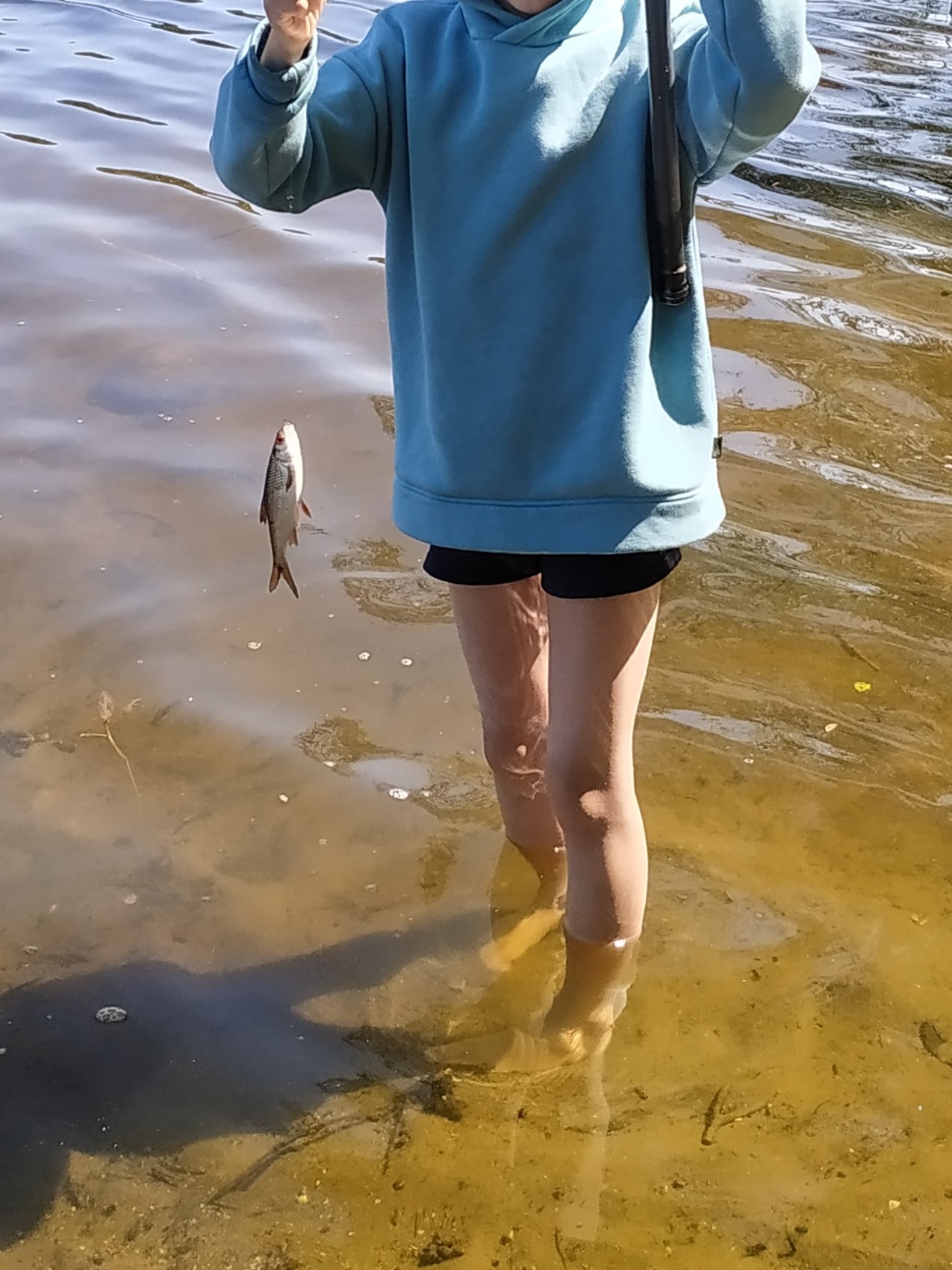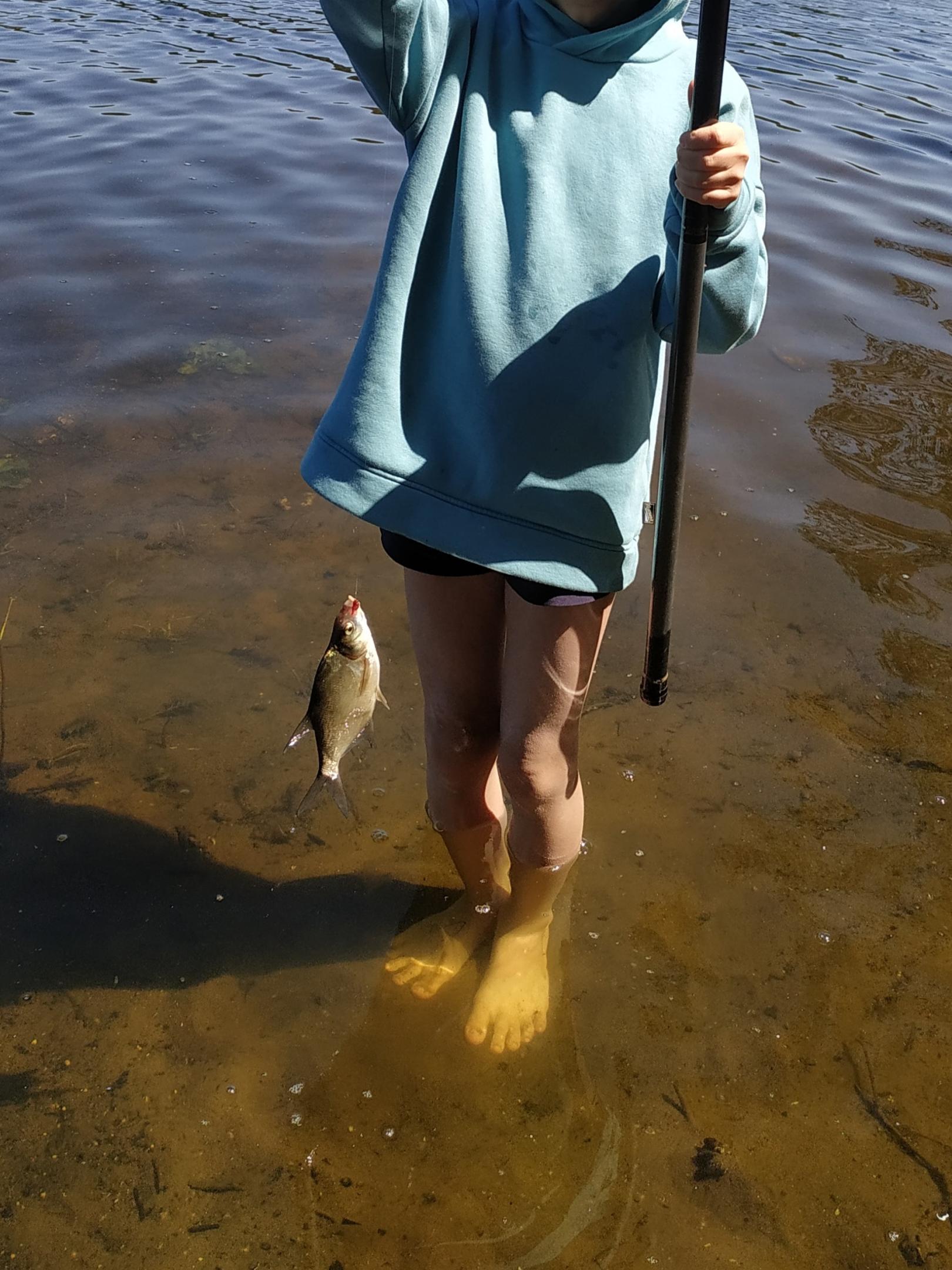 Собрали фидера, спрятали вещи в палатку, взяли мах 5.5, и отправились на место мужика на самокате. Как же приятно стоять с удочкой по колено в чистейшей воде. Под ногами ползают шитики, рядом стоят бычки или пескарики. Прям что-то теплое из детства.