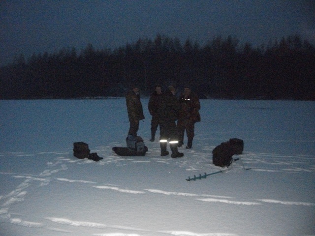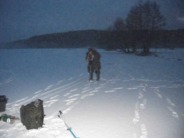 По рыбе - рыба ушла в полный отказ и коматоз. Ловили окуня и щуку. Одна щука срезала блесну, вторая была в районе 30-35 см - отпущена нагуливать жирок. Были и ставочники, всё в пределах приличного, но и у них слабо. Один достал небольшую - отпустил в соседнюю лунку, за что ему огромное спасибо.