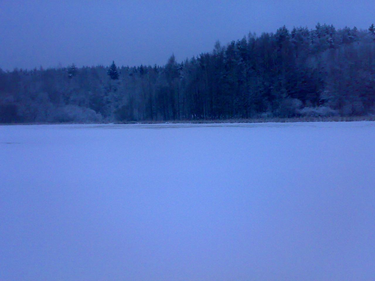 Так вот, мы приехали, если кто знает, к кладбищу в Мочанах, примерно в 16 часов. Все озеро покрыто льдом. С берега - удар пешней и фиаско! Пешня уходит в воду.