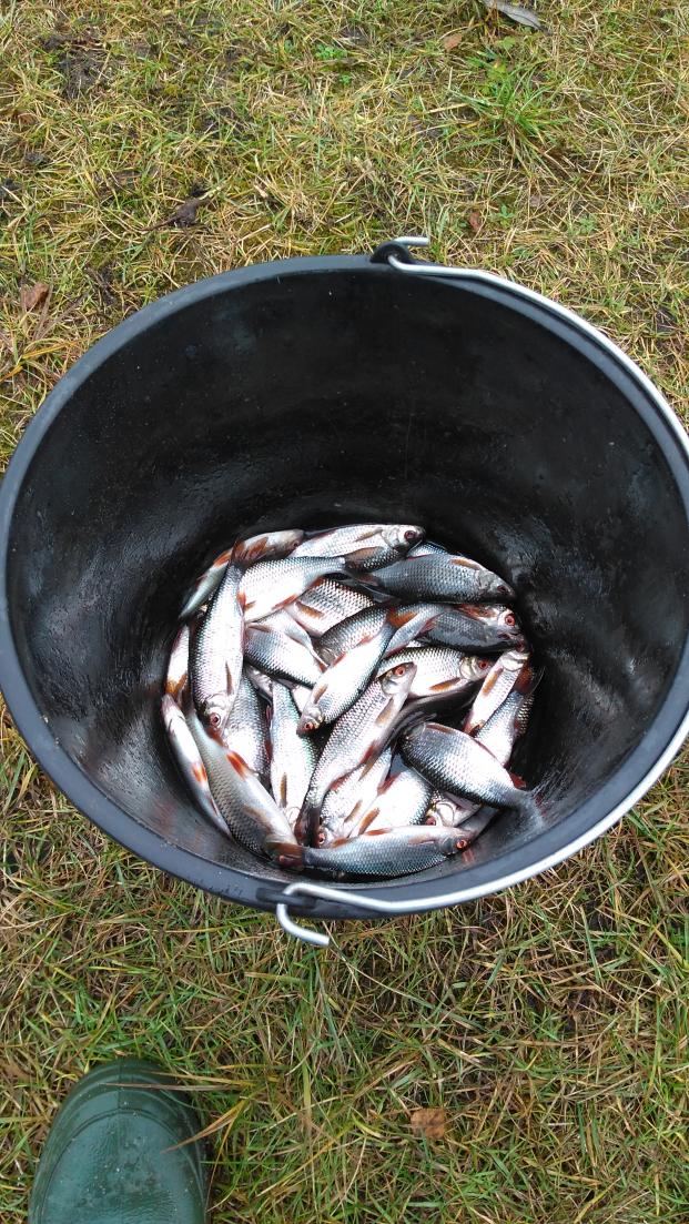 Выехал около часа, приехал, разложился по быстрому, замешал прикорм, вот правда из за спешки "слегка" не доувлажнил прикормку,что в принципе и сыграло со мной немного злую шутку,так первые пол часа я ловил со дна,а рыба стояла выше,в 20 см ото дна.После того как понял что и как,за последние час-полтора что были до конца сессии успел выловить штук 25 плотвиц, некоторые были приличных размеров.Рыбу не взвешивал, но на рыбный супчик мне на пару раз хватит.Ловил на матч, но надо было ловить на фидер-туман задалбливал своими сюрпризами-поплавок периодически скрывал туман что заставляло порой делать пустые подсечки,