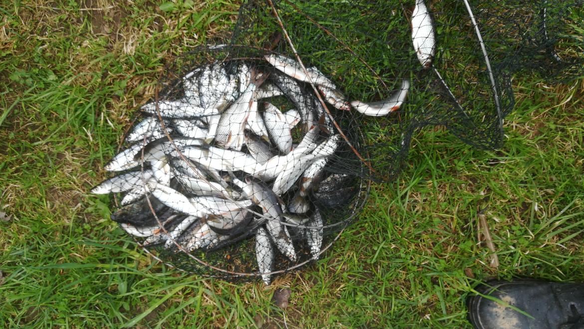 Фидер, спасалка, на троих десятка два плотвы и гибрида плотволеща. Всё на мотыль, остальное в игноре, плотва мелкая, окунь весь в чёрных точках.