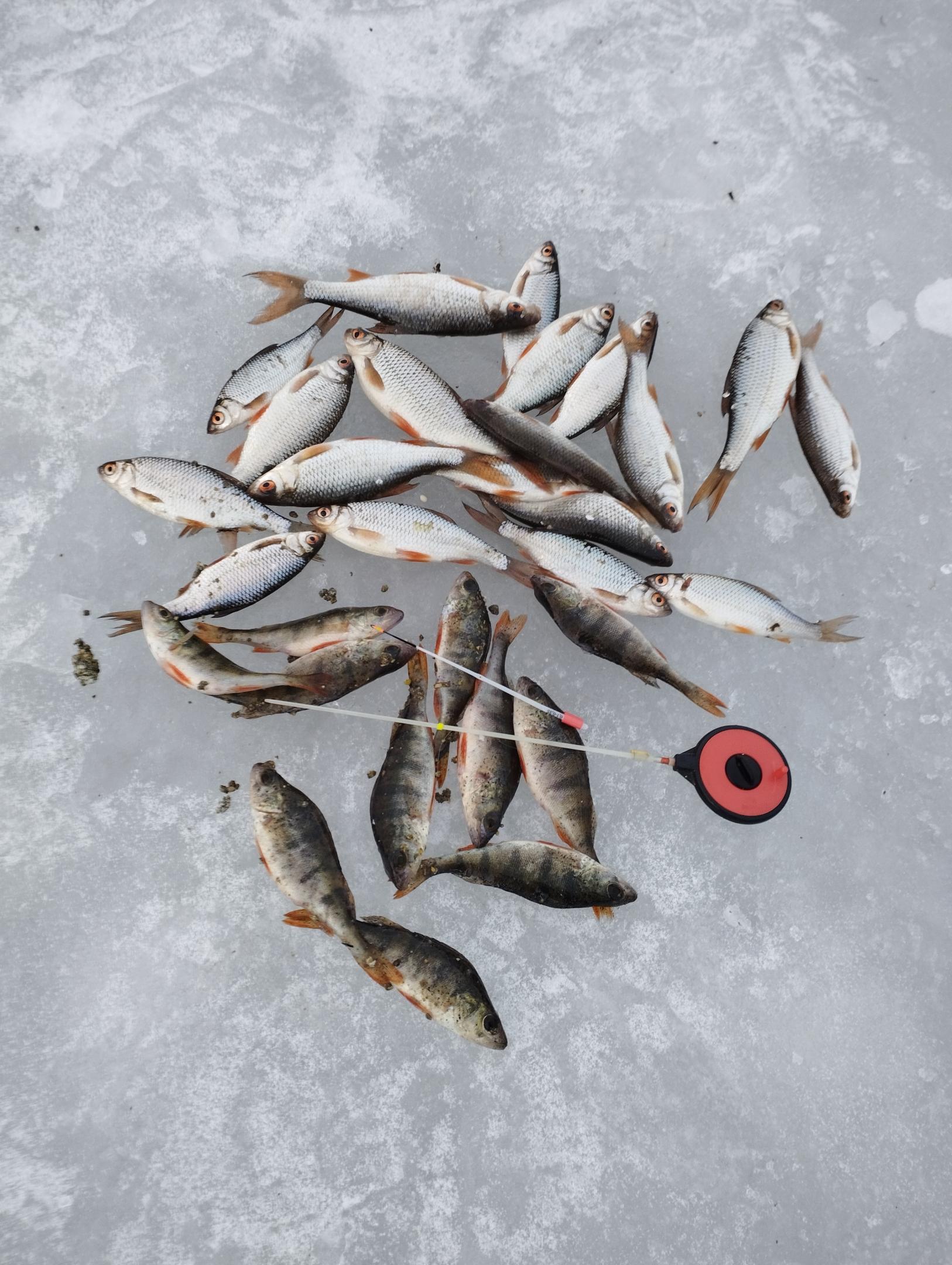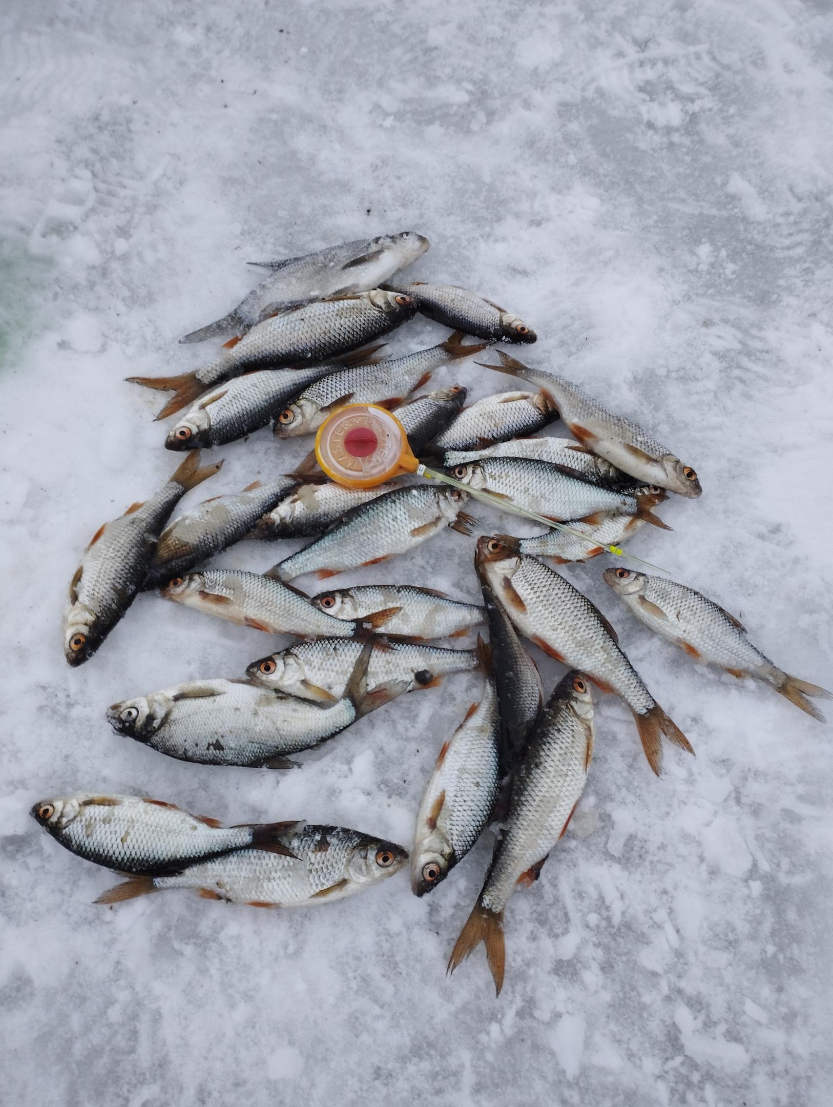 Я ловил на спортивную мормышку 1.6мм. Поклевки начались с первого круга, исключительно мотыль колечком. Если по-другому, не клевало. Клевала мелкая плотва, было несколько фанерок.
