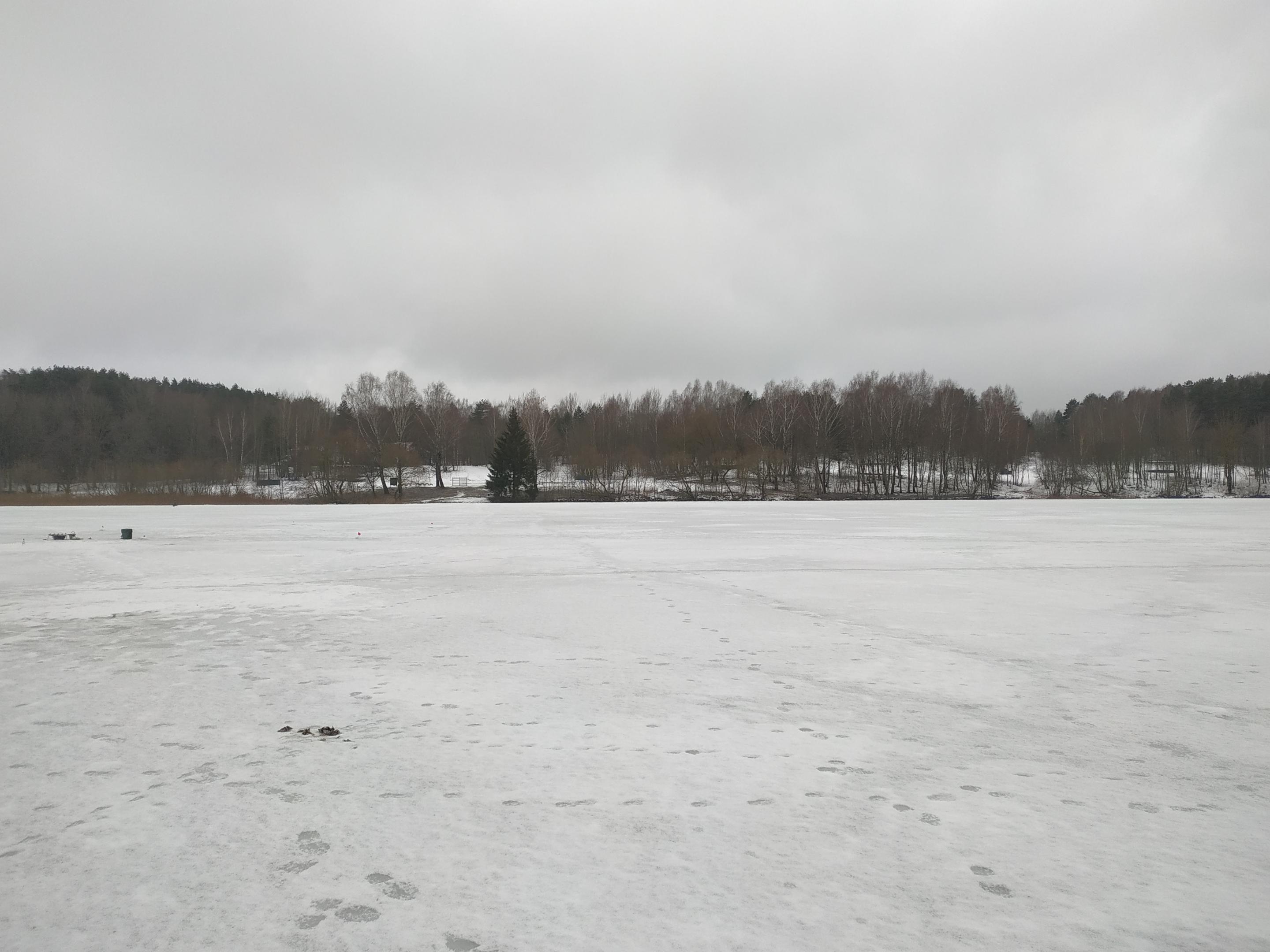 Сегодня ловил со стороны Комсомольца, нацеливался на плотву. На этот раз решил выбрать для эксперимента место, на котором никогда не видел сидящих рыбаков, хотя такой подход это риск пролететь. Соблазнила глубина 4,5-4,7 м. Рассчитывал, что плотва должна собраться на закорм и прогадал. К 10 закормил 6 лунок с добавлением лиманника, по две кормушки с разной высоты, в предыдущие рыбалки это неплохо срабатывало. В итоге оказалось что в этой зоне нет ничего, кроме мелкого окуня, и тот был не очень то активный, по одной поклёвке в лунке, да и то не в каждой. В 14 ч. решил перебраться на сотки, где плотва обитает гарантированно. Остатками менее эффективного корма закормил 4 лунки, хватило по одной кормушке, без лимана. Активного клёва не было, но разнокалиберная плотвичка поклевывала, по 1-2 с лунки. Ловил на кивок, мормышку, вначале мотыль, затем перешёл на макароны. Лучше клевало со дна, чем на игру. На безмотылку не получалось, хотя сосед немного полавливал, но тоже жаловался на слабый клев. К вечеру плотва попадалась покрупней, но без серий. Ловил до 16.30. Ставил 4 ставки, не сработали. Вдоль камышей стояло много ставок, но срабатываний тоже не было. В местах, где ловил лёд сантиметров 20, крепкий, сверху подморожено, воды нет, передвигаться комфортно, заход на лёд нормальный. Есть места с размытыми старыми лунками, пока нет снега их хорошо видно. Погода была приятная для рыбалки, без ветра, Нажмите на изображение для увеличения.