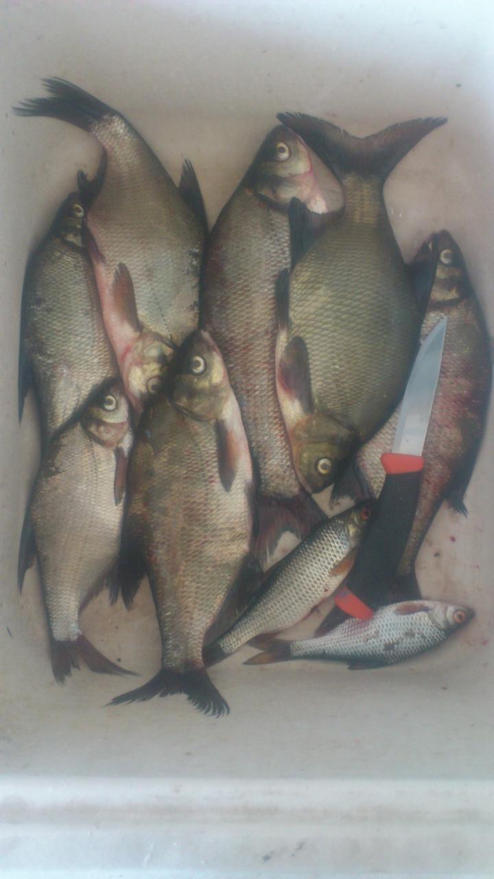 Сначала кормил каша( пшено+ сухари + прикорм , фирму не помню,спешил, купил первую что посоветовали про-во Гродно ) наживка опарыш мотыль. До 8 часов были мелкие поклевки , уже хотел уходить, но замешал кашу с проверенным Dragon Elite, через 10 минут подошла мелочь в лице плотвы , ну а потом пару средних подлещиков и один "трофейный" лещ.