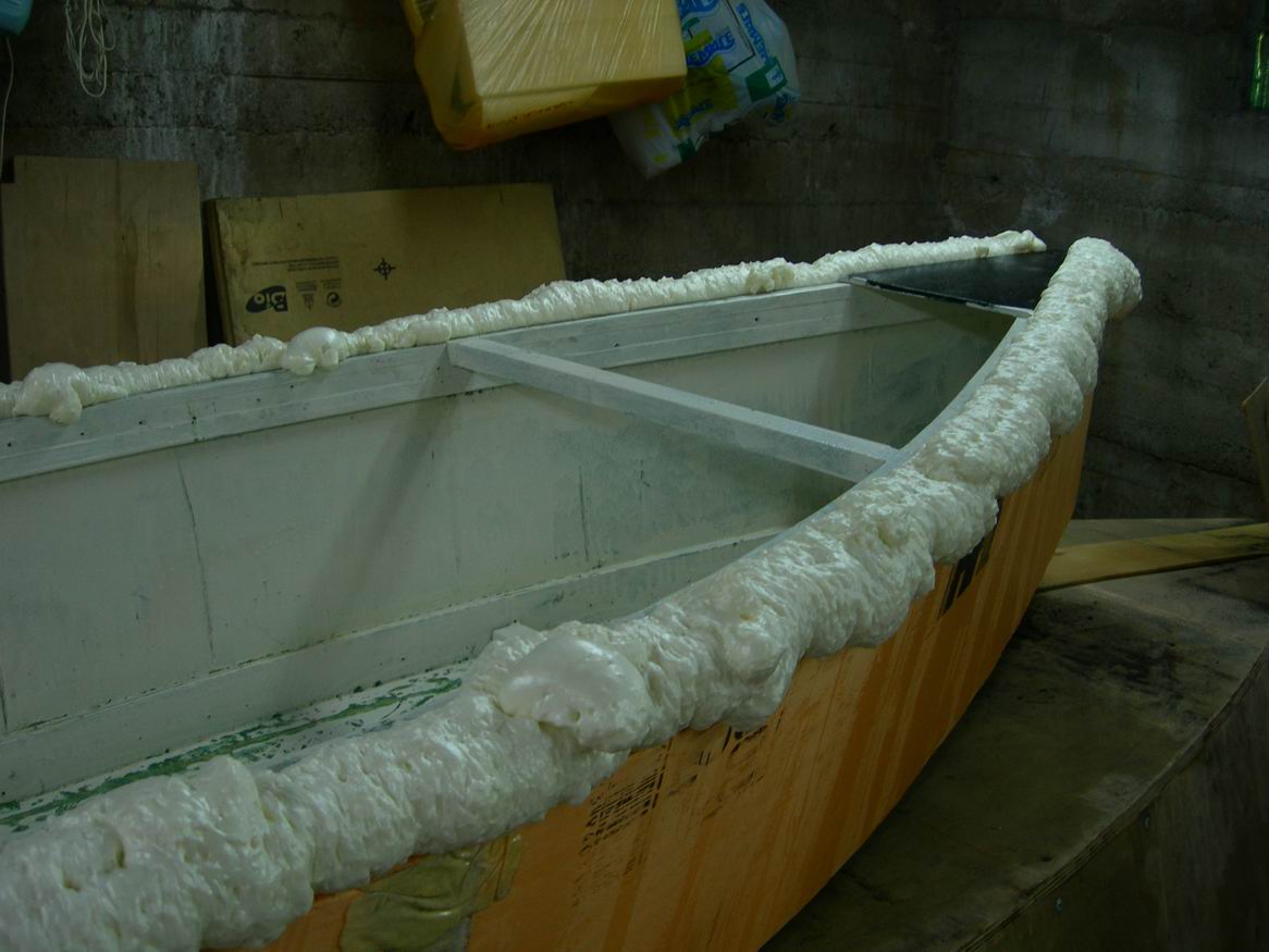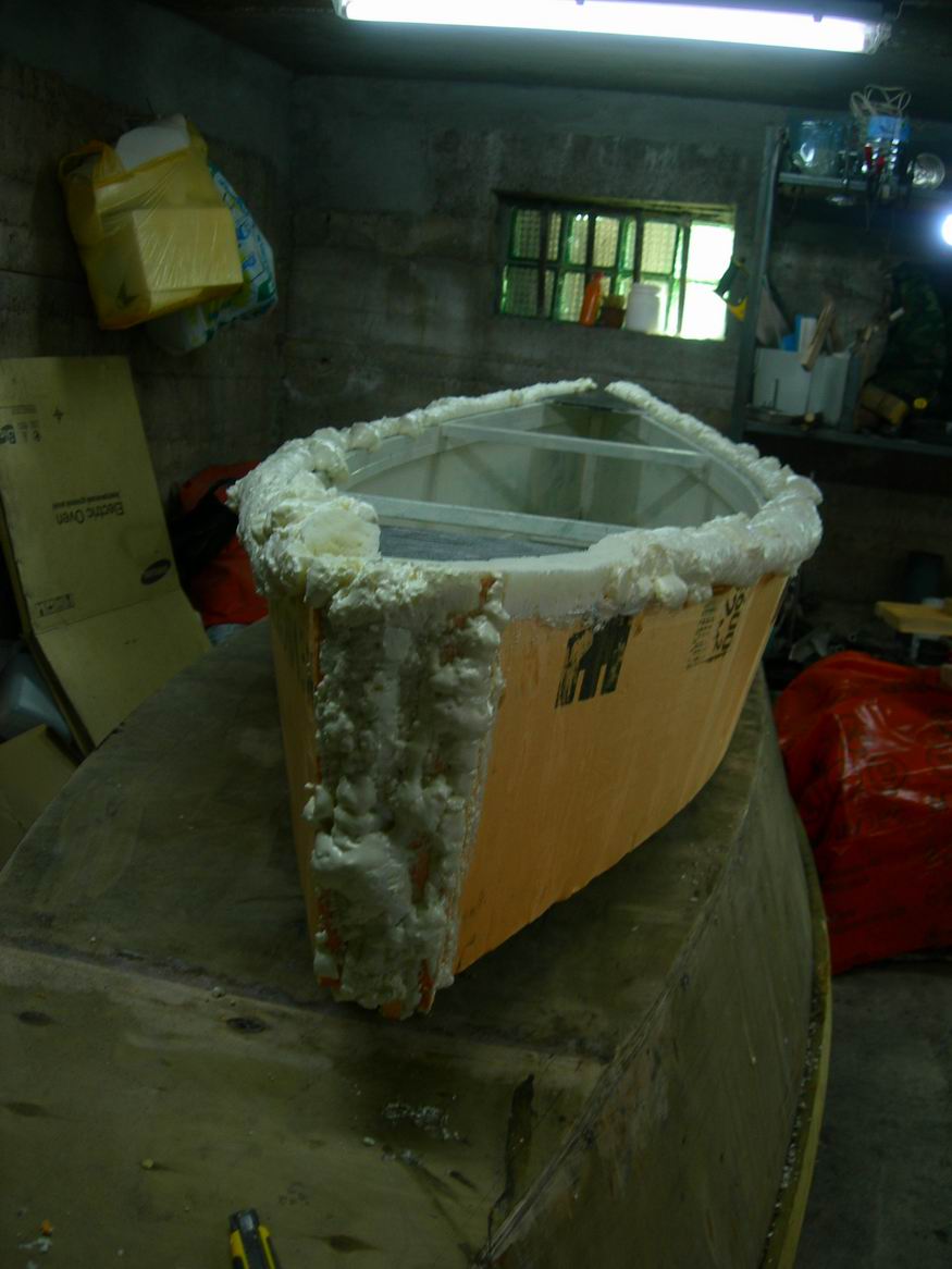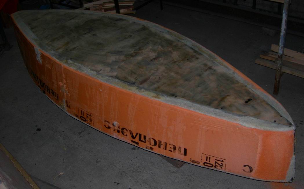 Дождался как обсохнет, обрезал в размер, ободрал форштевень и выступающие части рубанком для гипсокартона (главное сильно не давить - зазубривает, пену в особенности - с мясом выдирает), скруглил углы.